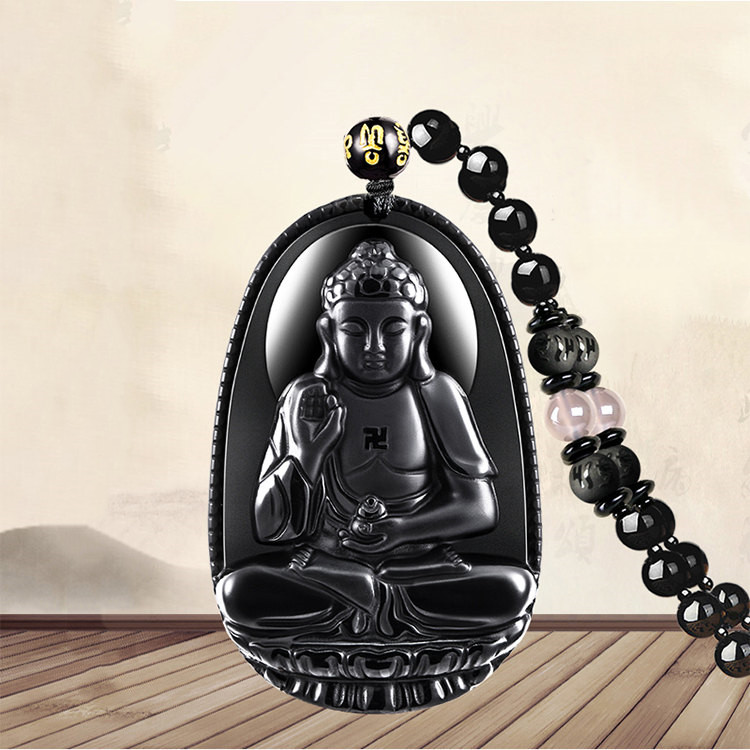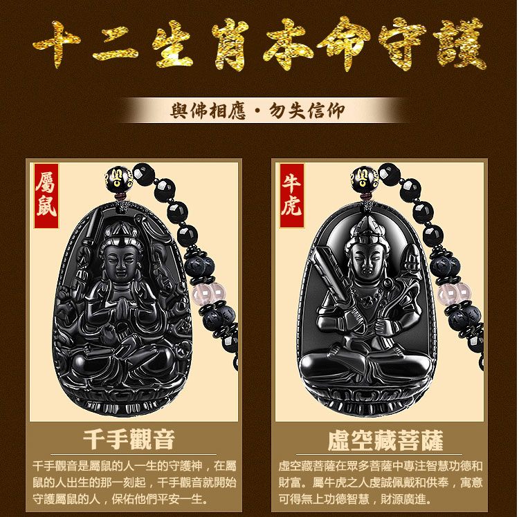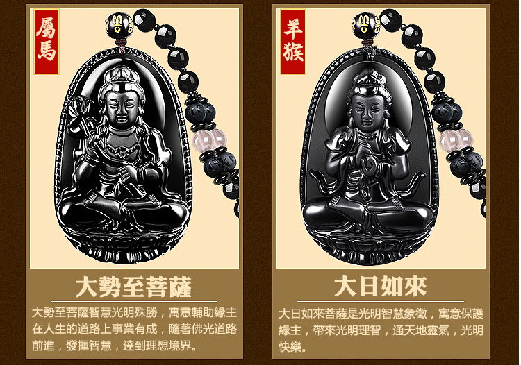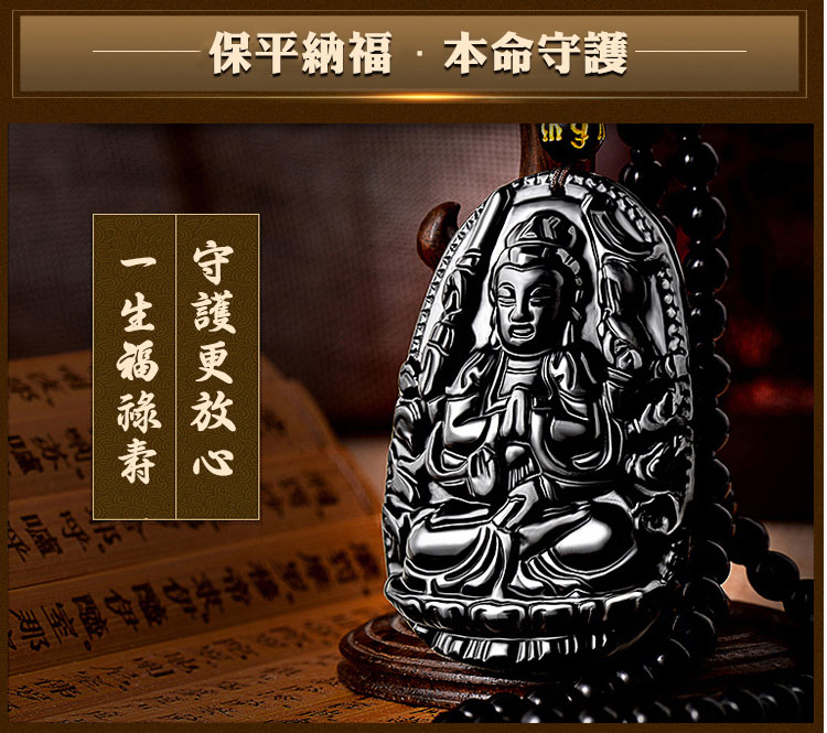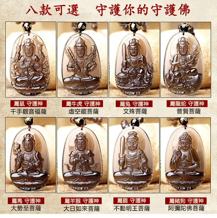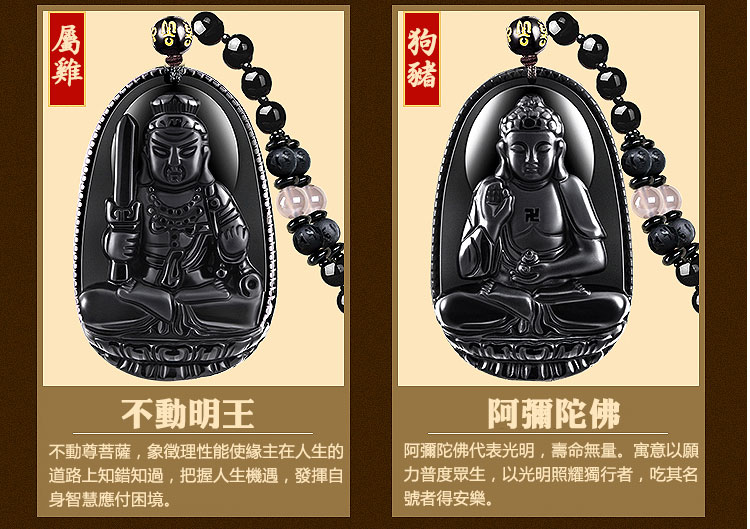 【招財辟邪】【生肖狗豬阿彌陀佛】6A頂級天然烏金黑曜石十二生肖本命佛守護吊墜項鍊