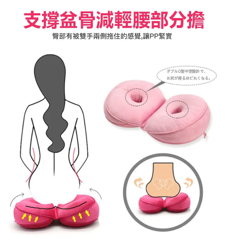 日本熱銷科技美臀骨盆坐墊 | V型外擴緊實PP | 呵護尾骨久坐不累 | 冷熱兩用舒適透氣 | 日本熱銷雙孔可折疊記憶棉美臀坐墊
