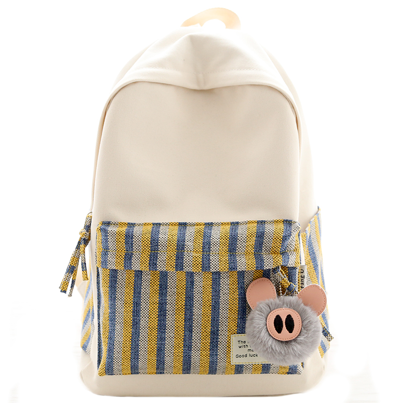 時尚條紋撞色小清新帆布書包女韓版雙肩後背包