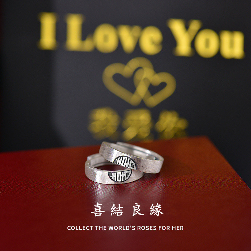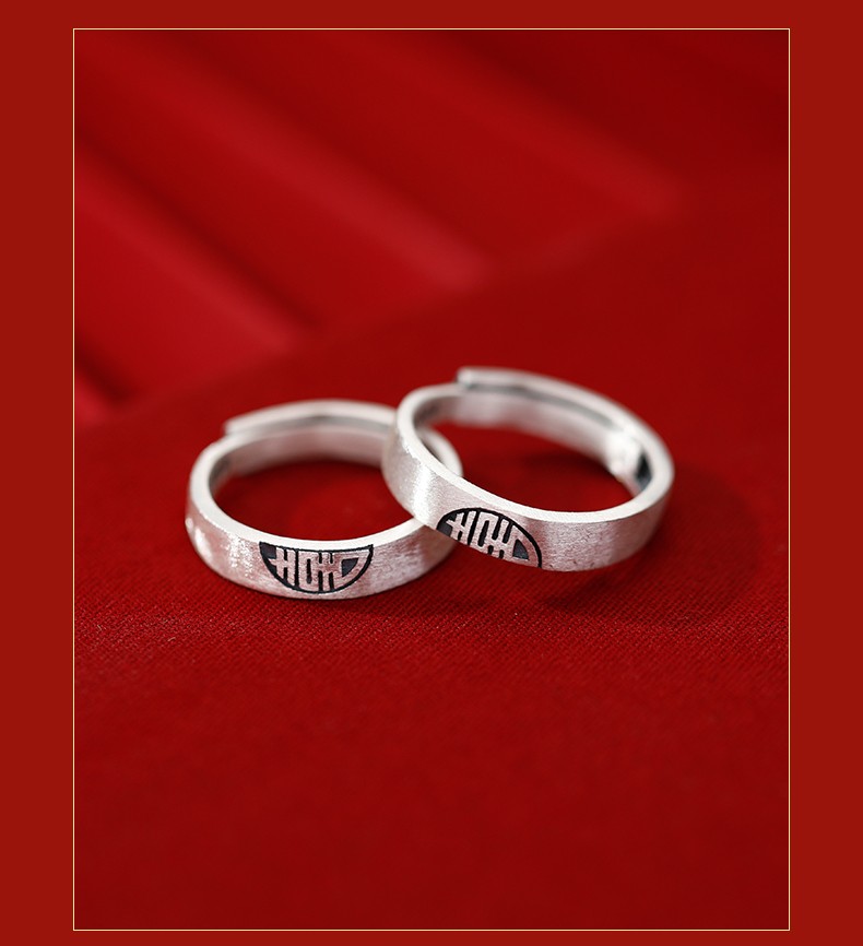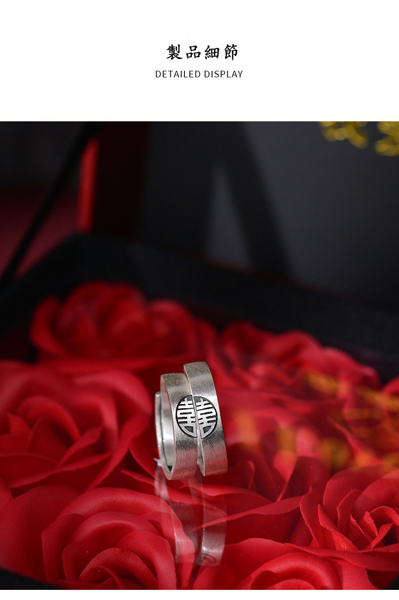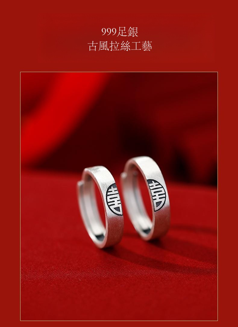 喜結良緣 | S999千足銀 | 原創設計古風喜結良緣喜從天降男女999足銀戒指情侶對戒