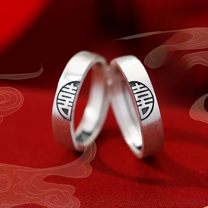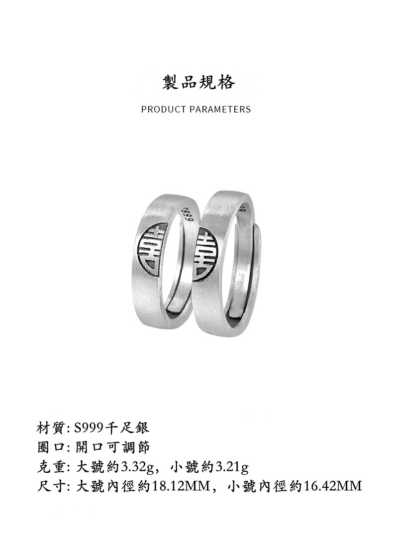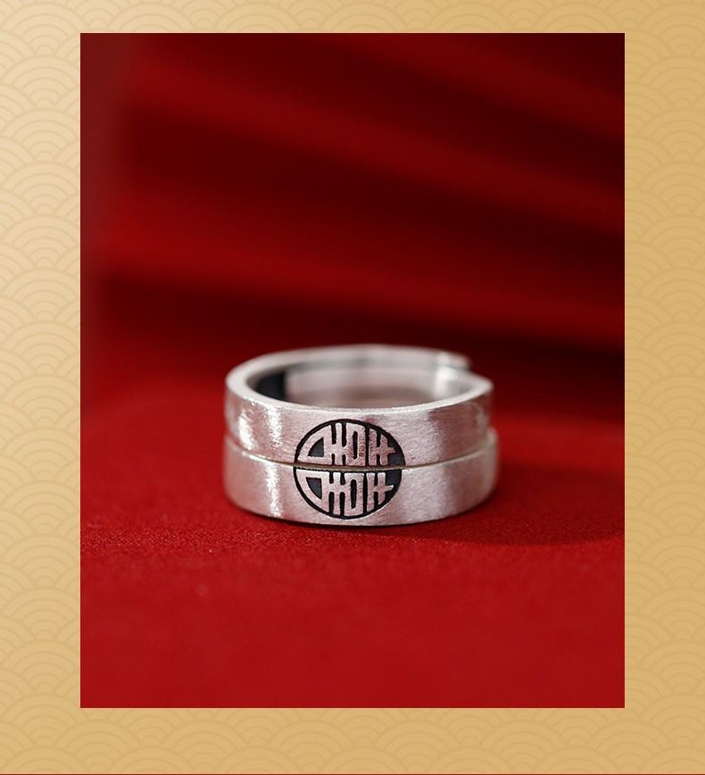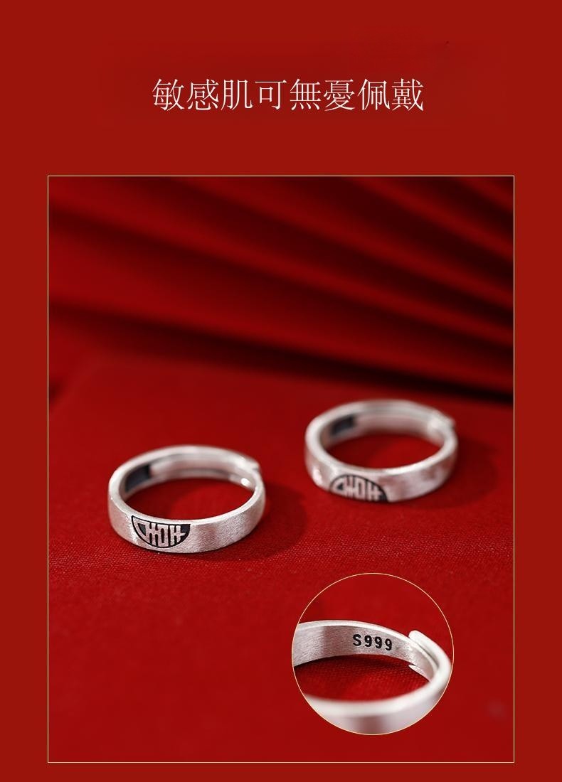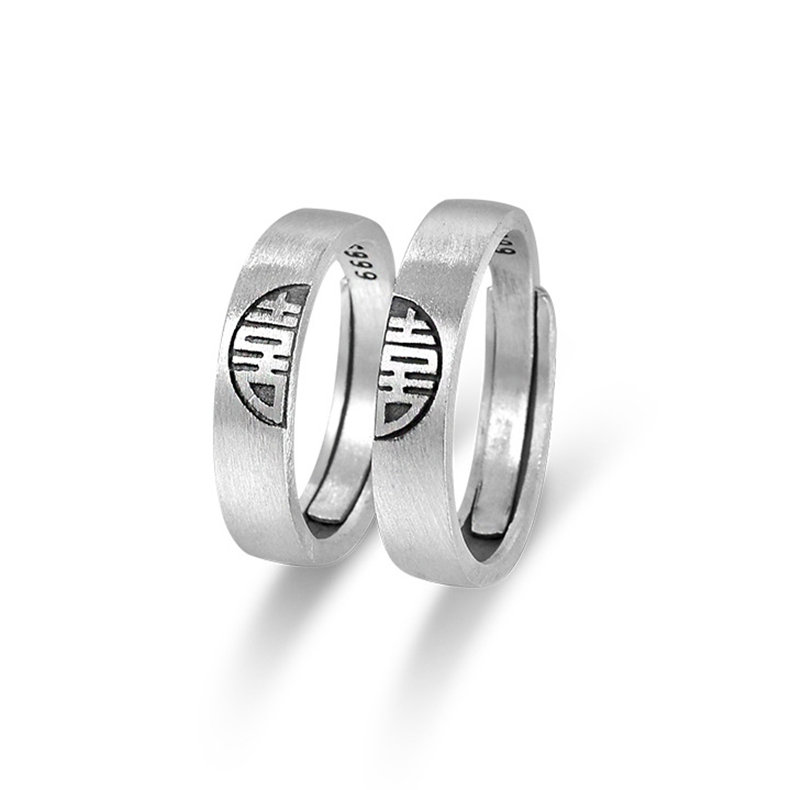 喜結良緣 | S999千足銀 | 原創設計古風喜結良緣喜從天降男女999足銀戒指情侶對戒