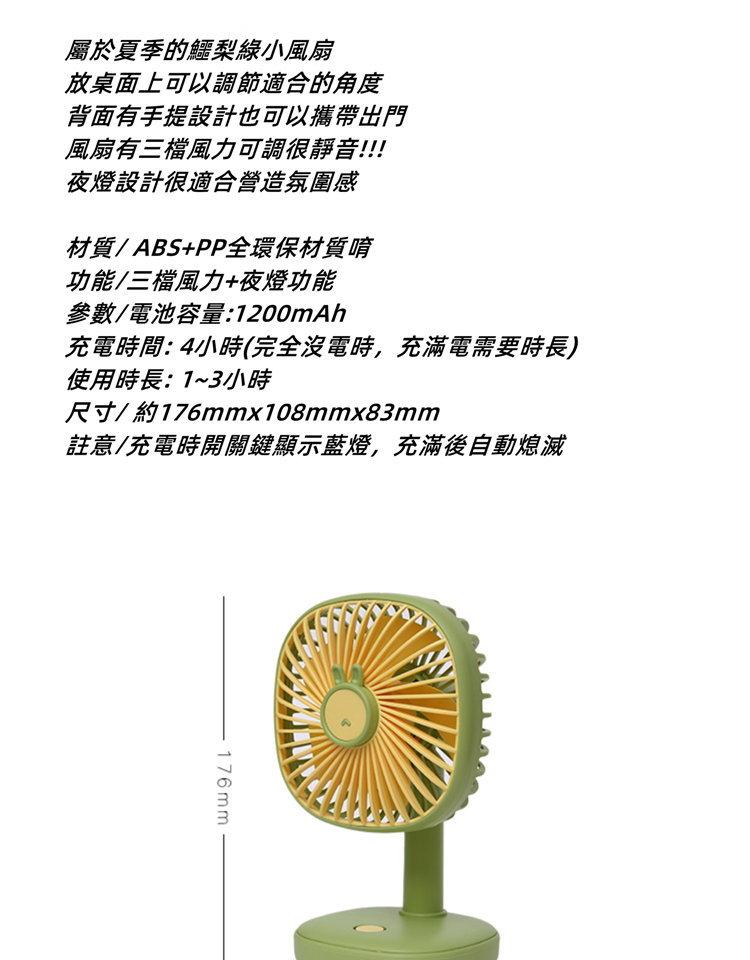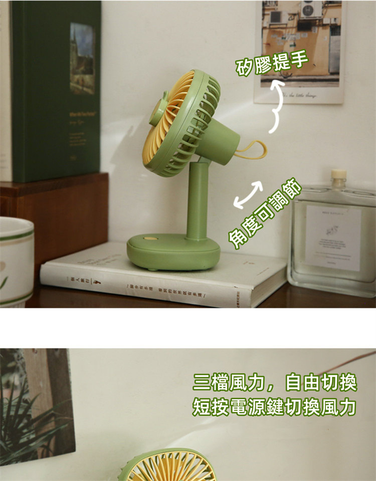 復古美型文藝夏季桌扇 | 三檔風力可調 | 超靜音出風 | 柔和氛圍夜燈 | 充電插電兩用 | 日式可愛復古鱷梨綠小電扇USB桌扇小風扇