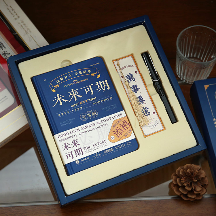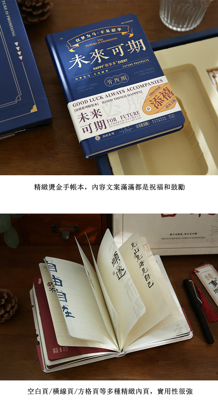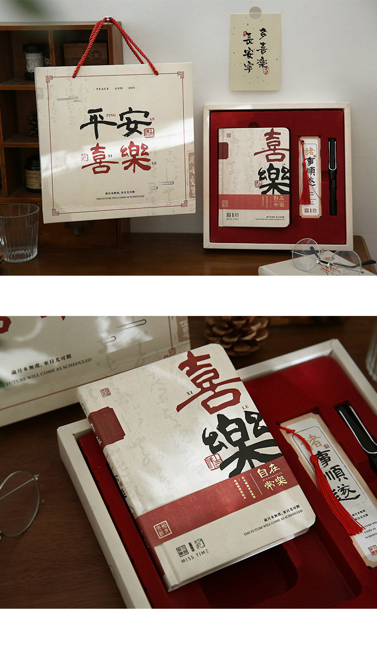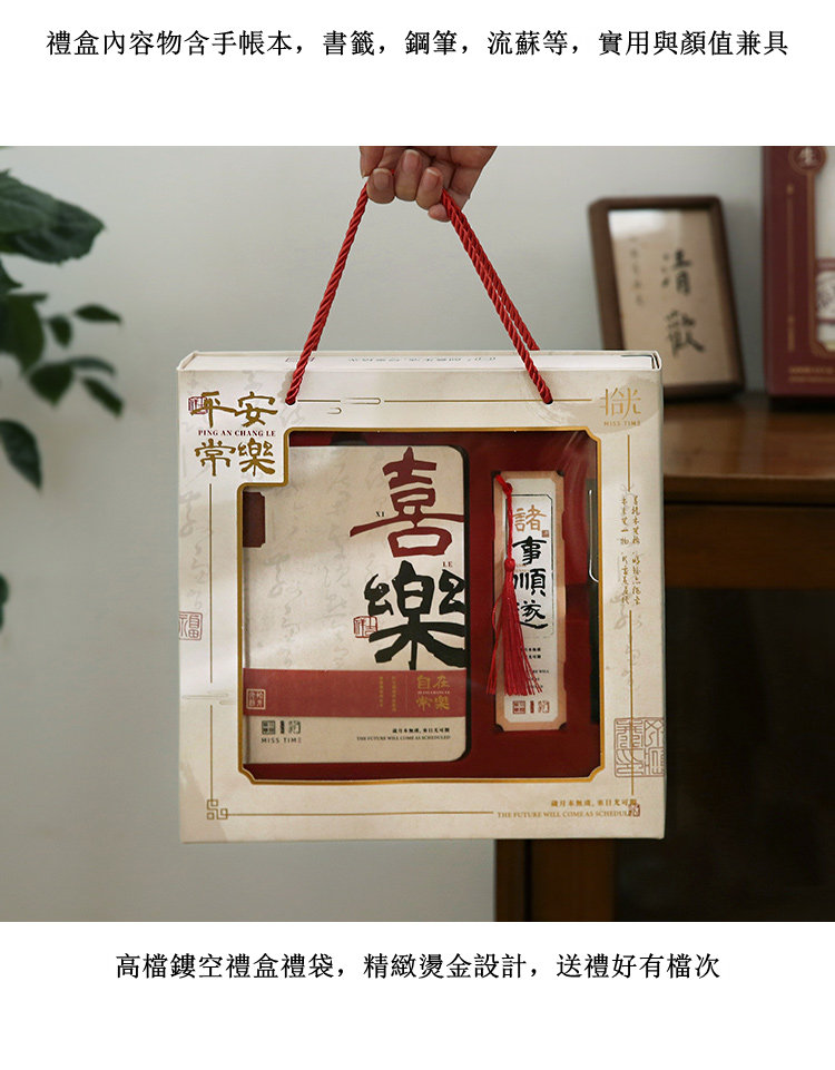 平安喜樂未來可期 | 高檔燙金手帳本鋼筆書籤流蘇禮盒 | 精美實用內頁 | 文藝氣質送朋友送閨蜜禮物祝福鼓勵高檔手帳本鋼筆書籤禮盒送禮袋