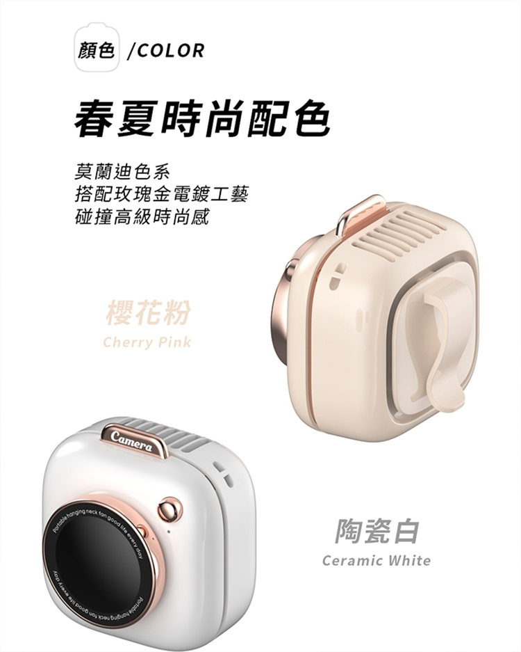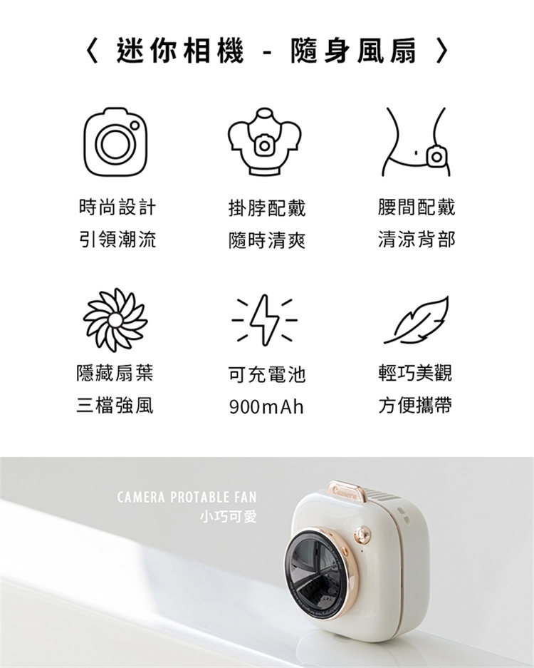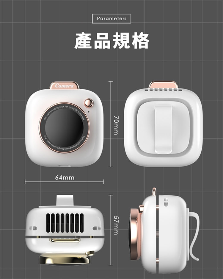 復古相機造型項鍊式小風扇 | 掛腰掛脖兩用 | 隱藏扇葉三檔強風 | 大容量鋰電長效續航 | 少女心復古相機造型掛腰掛脖兩用USB小風扇