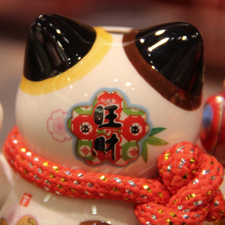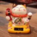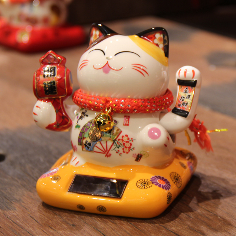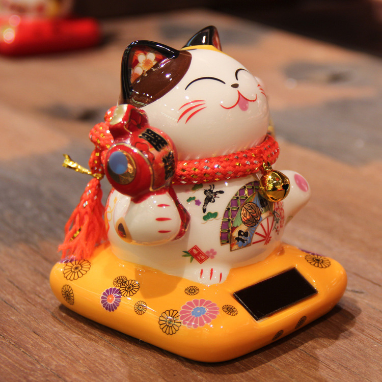 【太陽能搖手招財貓】【中小號】純手工製彩繪陶瓷日式納財開運太陽能搖手吸金招財貓 (10*9*11cm)