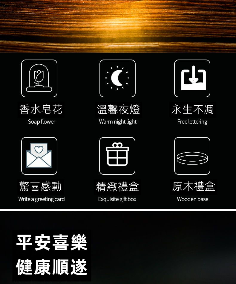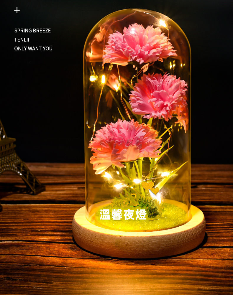永不凋謝的康乃馨水晶燈盅 | 韓國手工香水康乃馨 | 氛圍LED夜燈 | 原木底座 | 時光不老陪伴你浪漫感動送媽媽禮物永生康乃馨皂花玻璃燈盅禮盒