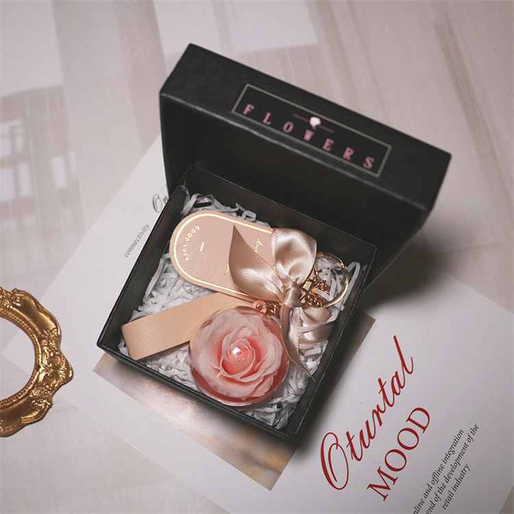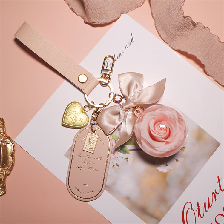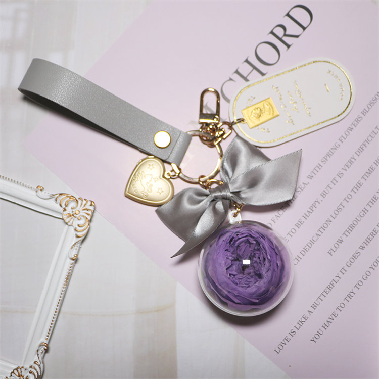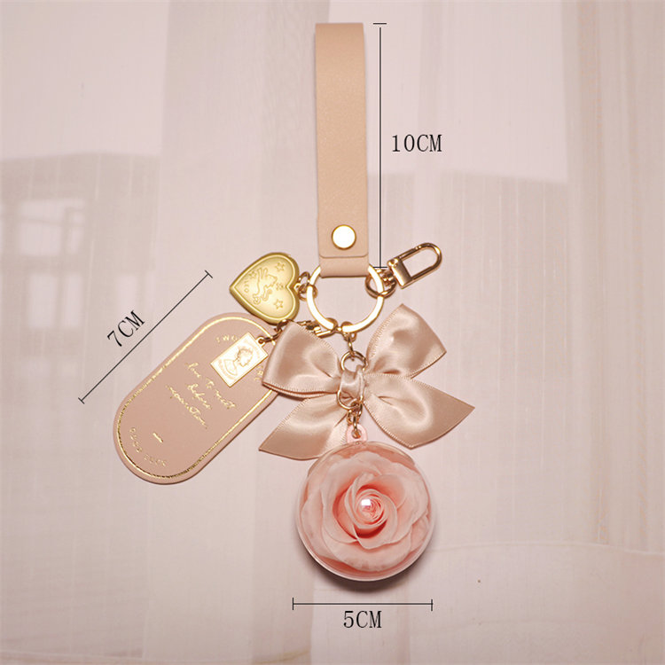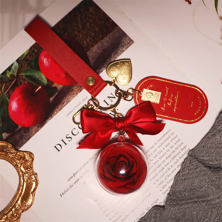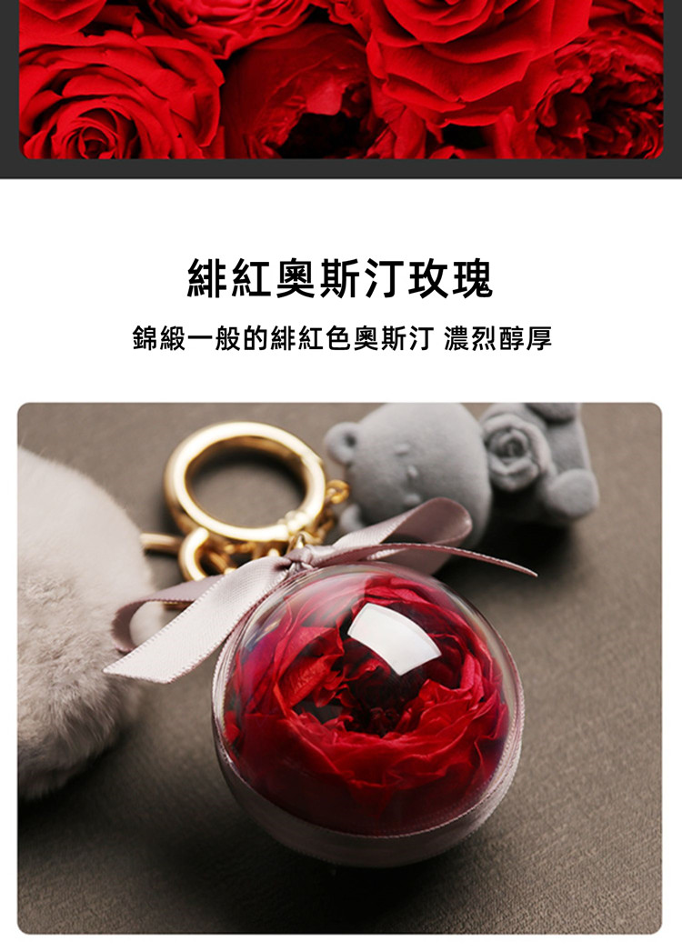 永生真玫瑰鑰匙圈吊飾 | 高透亞克力花球 | 浪漫高級送女生送閨蜜禮物大衛奧斯汀永生玫瑰花球皮革吊牌包包鑰匙圈吊飾禮盒