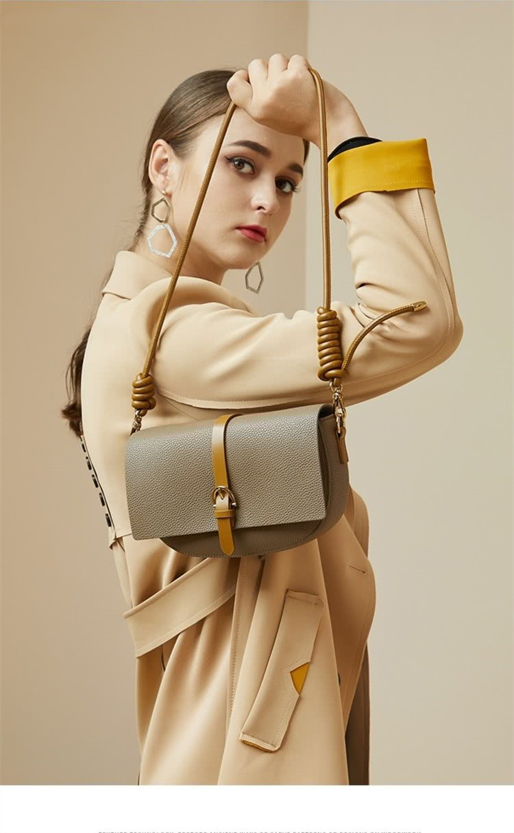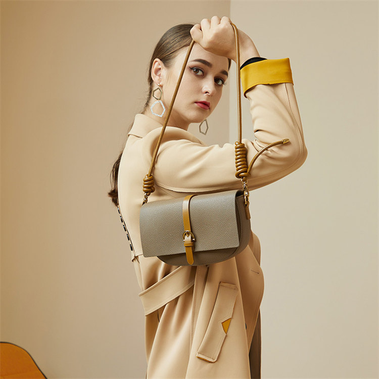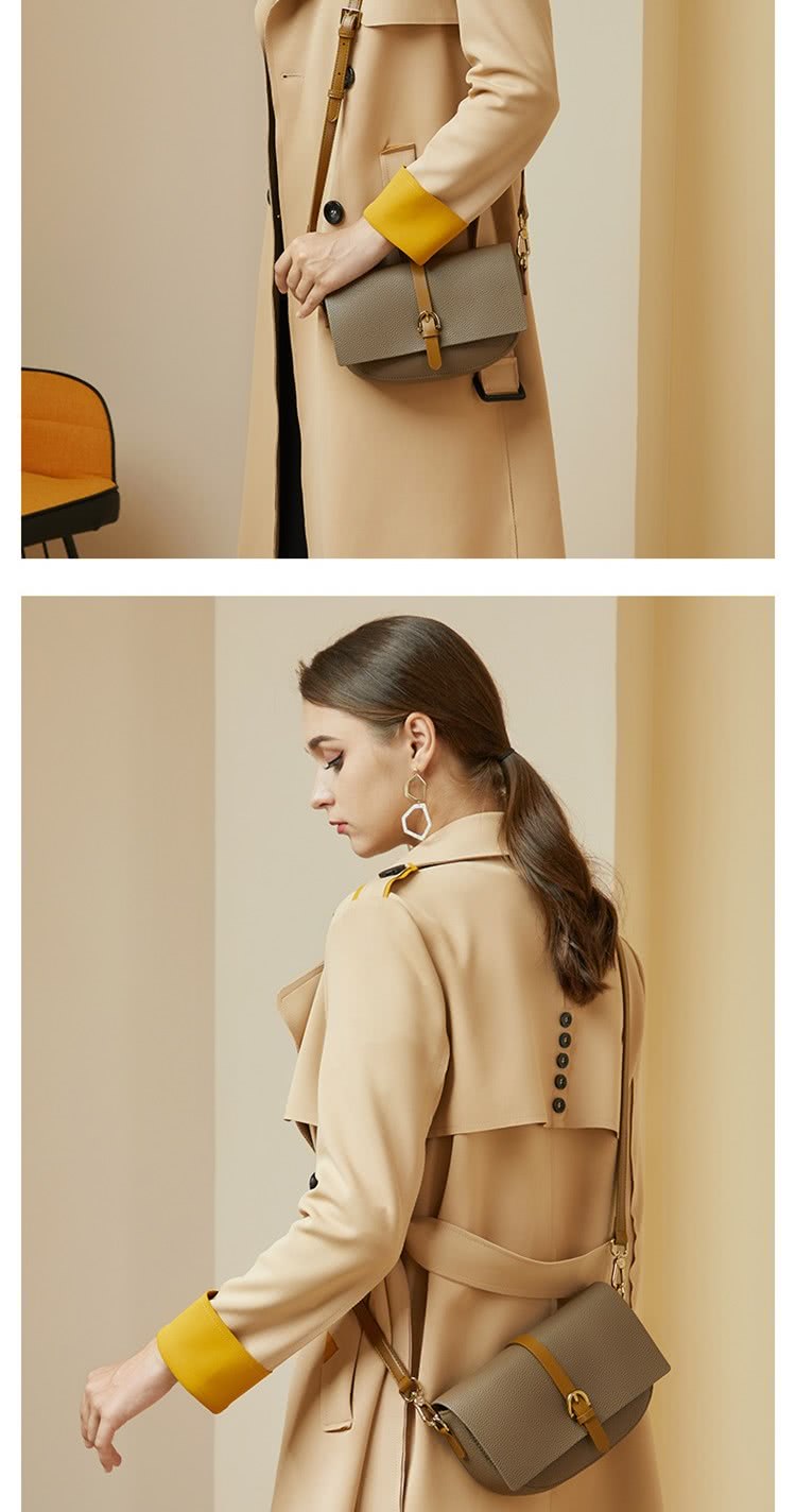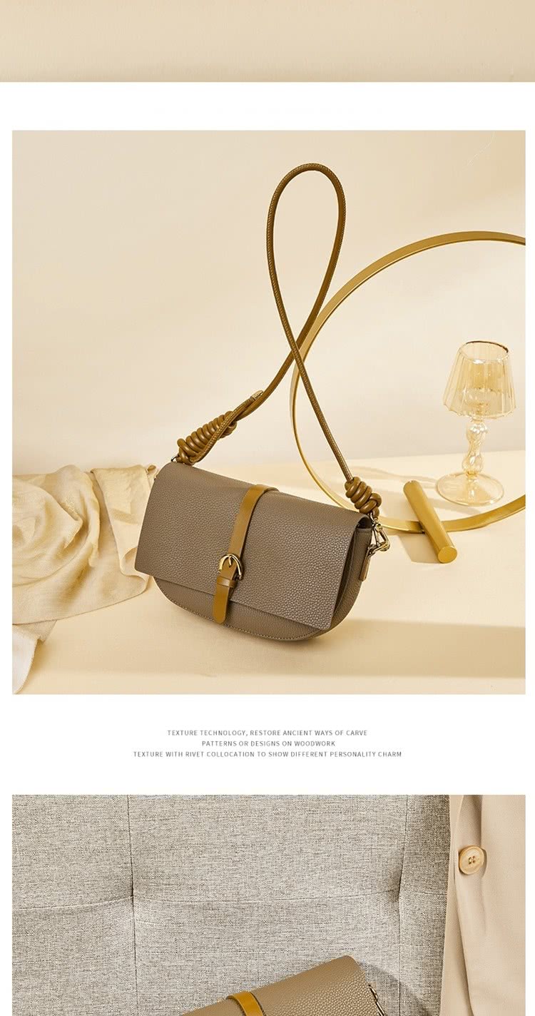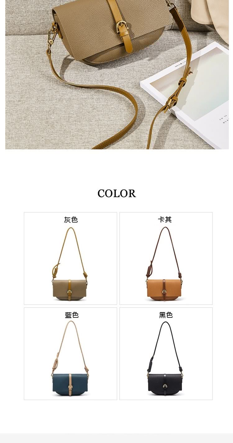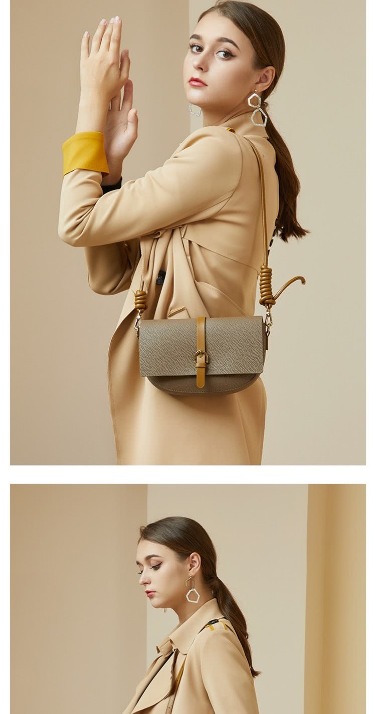 復古灰色馬鞍包 | 真皮小牛皮 | 精緻五金搭釦 | 小方包 | 側背包 | 斜背包 | 灰色女包