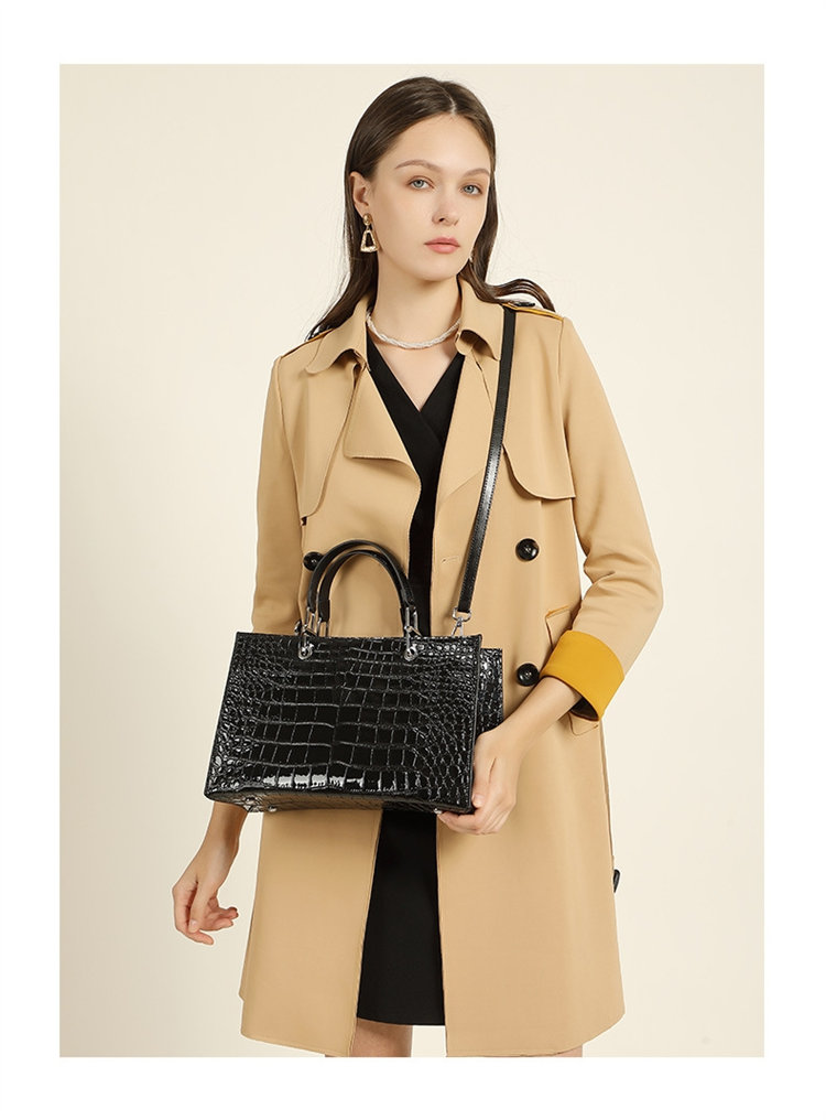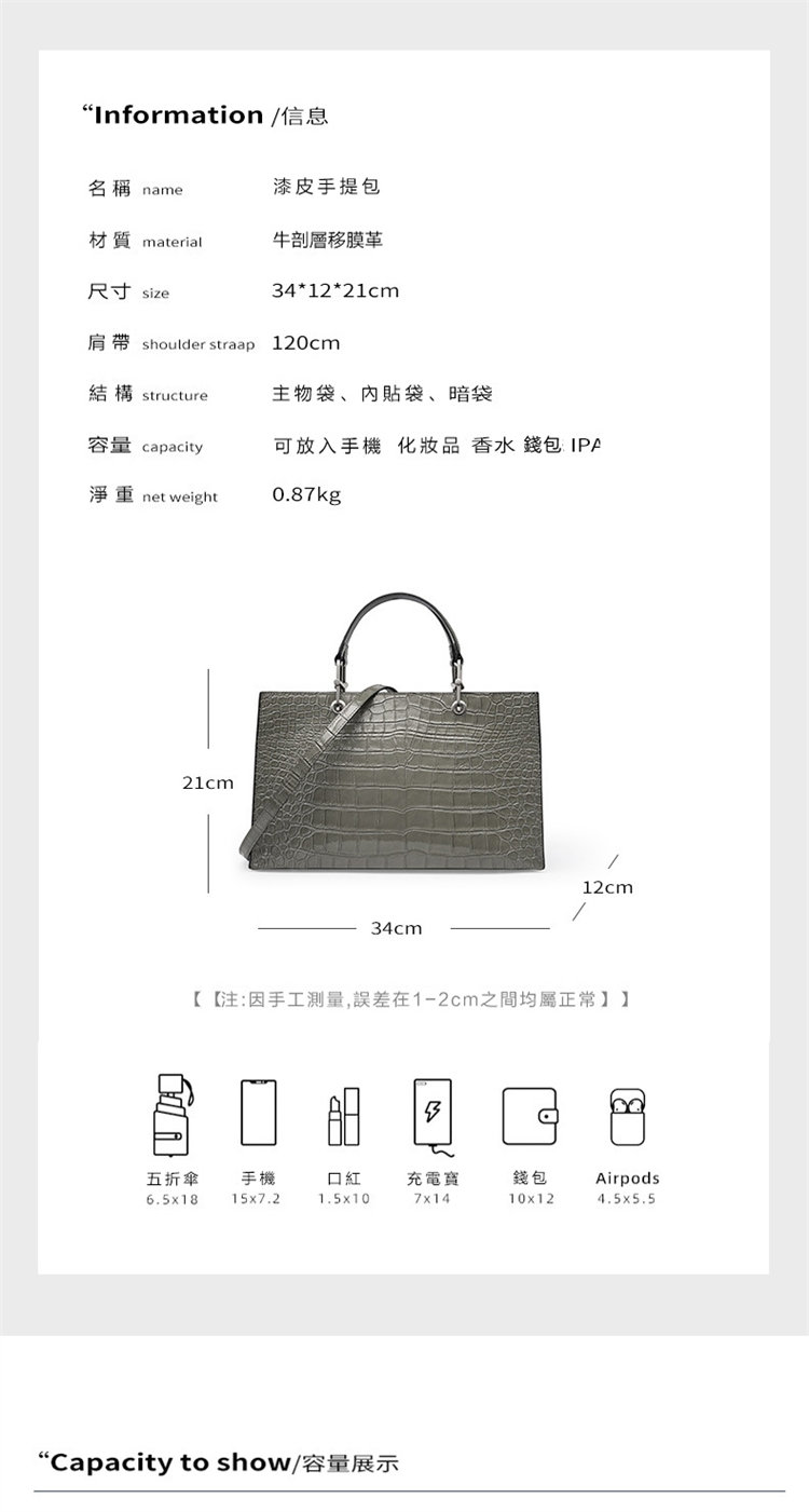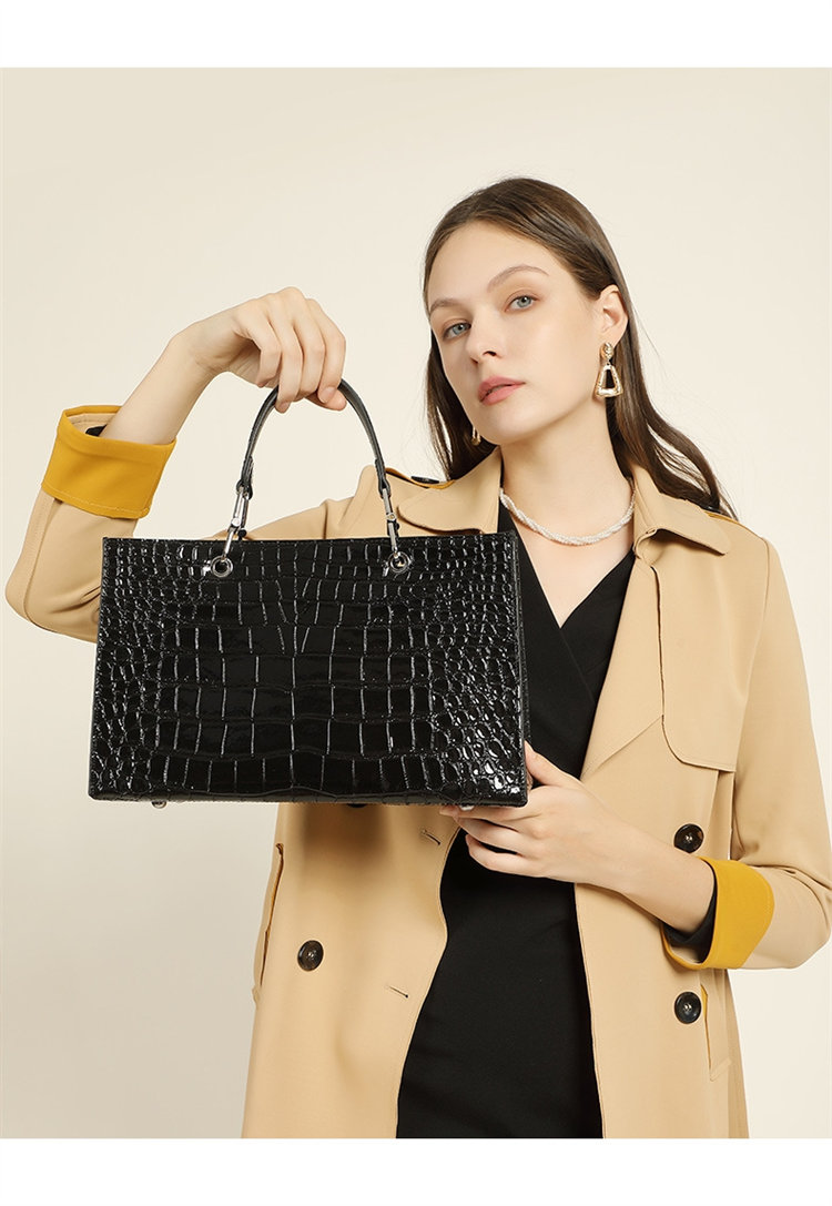 鱷魚紋鏡面漆皮包 | 頭層真皮小牛皮 | 手提包 | 側背包 | 斜背包 | 托特包 | 黑色女包