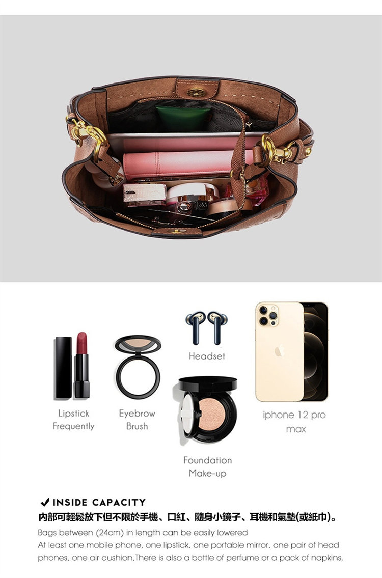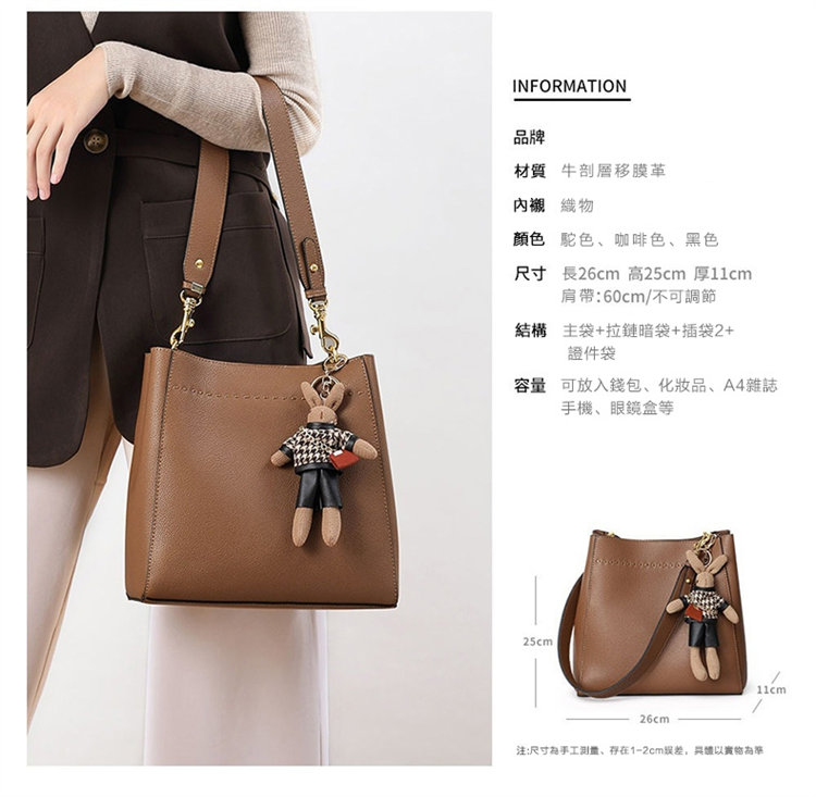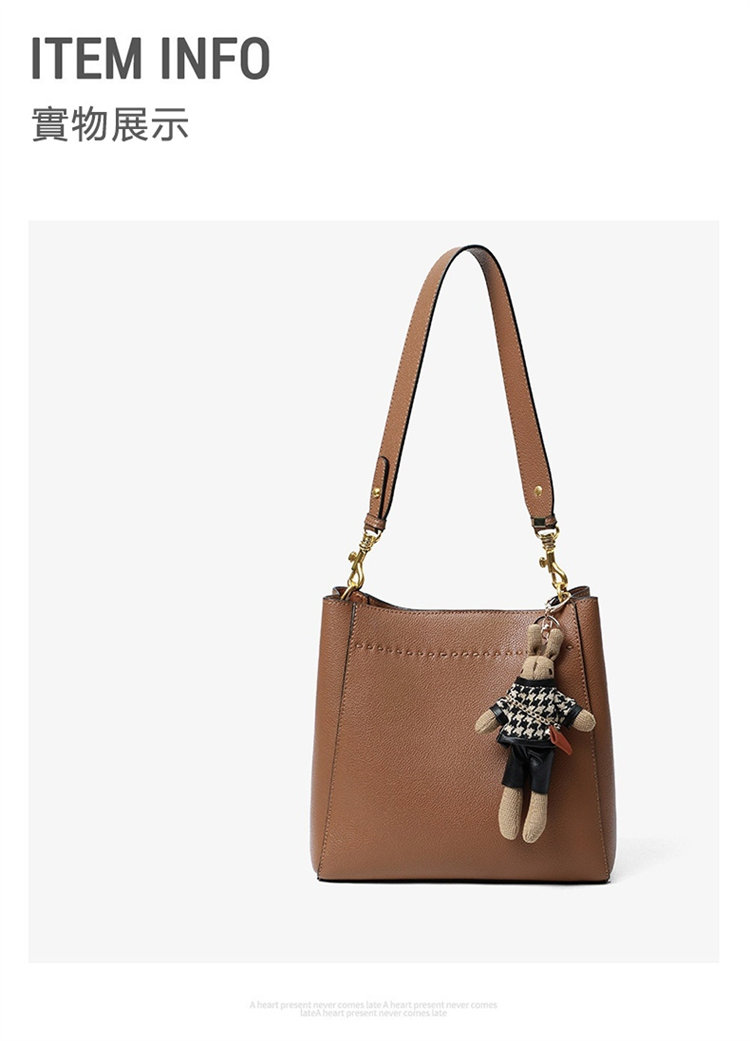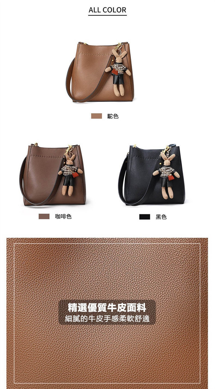 復古挺括水桶包 | 真皮小牛皮 | 送吊飾 | 側背包 | 斜背包 | 托特包 | 駝色女包