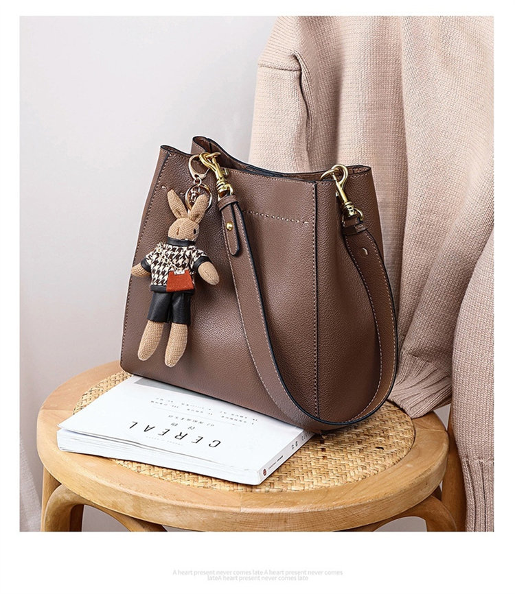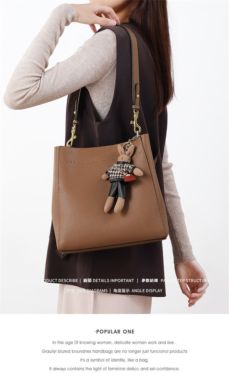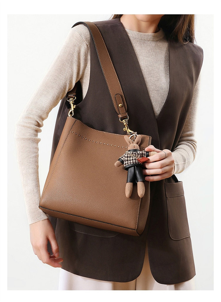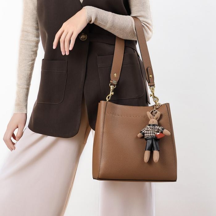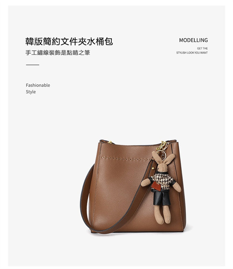 復古挺括水桶包 | 真皮小牛皮 | 送吊飾 | 側背包 | 斜背包 | 托特包 | 駝色女包