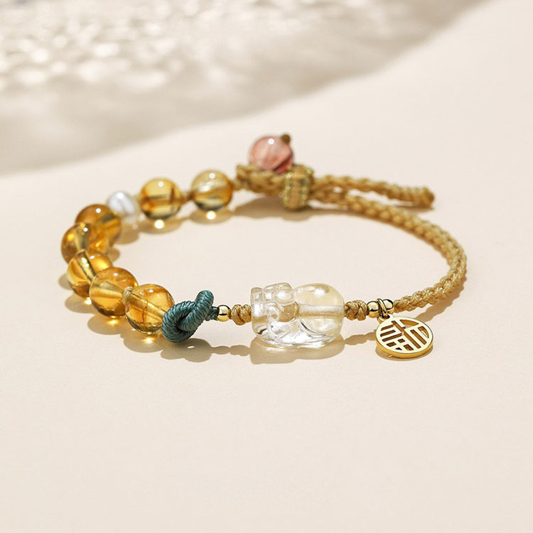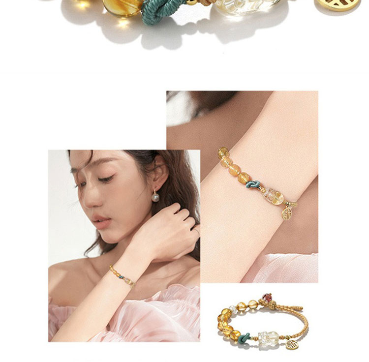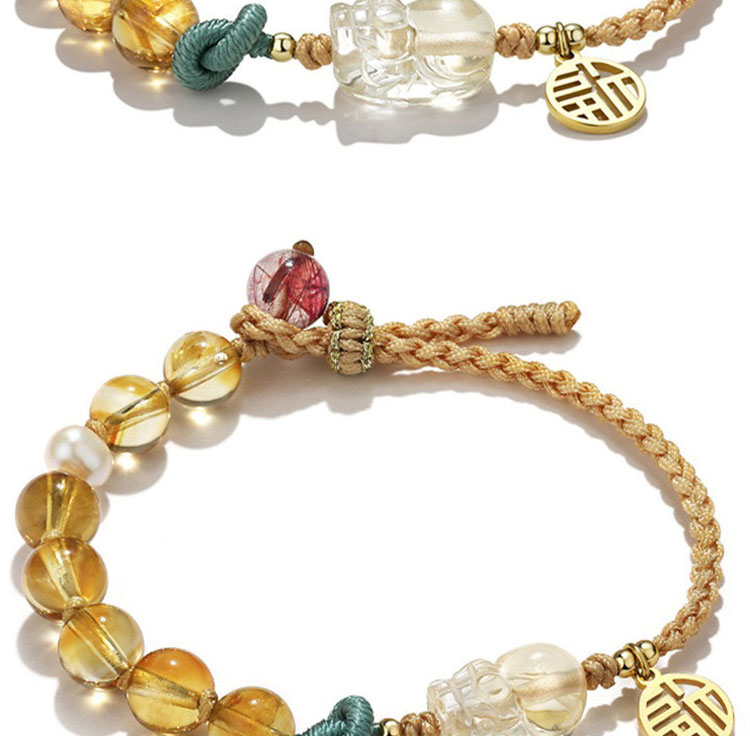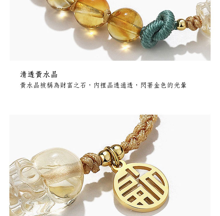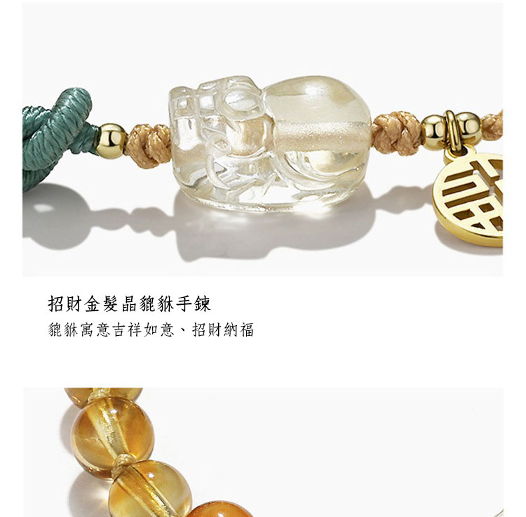 小小財迷 | 天然金髮晶 | 天然黃水晶 | 貔貅吊飾 | 女士 | 天然水晶 | 串珠手鍊