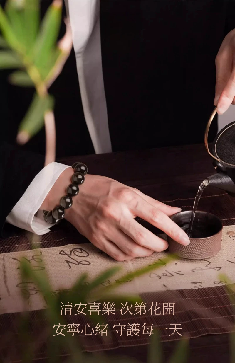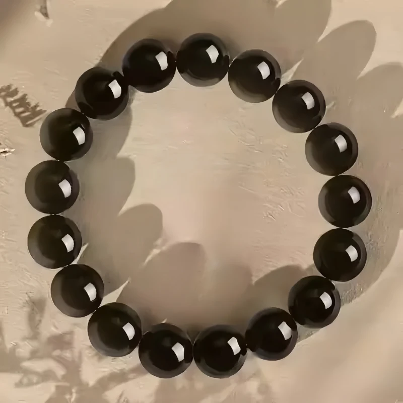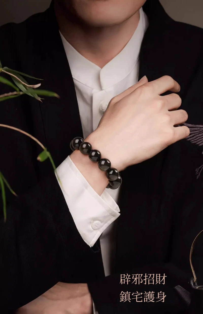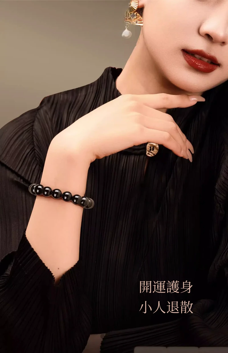 霉運退散 | 招財護主 | 天然冰島寶石級黑曜石手鍊 | 防小人防噩夢 | 大師級精細打磨拋光 | 2025男女天然水晶黑曜石手鍊手串