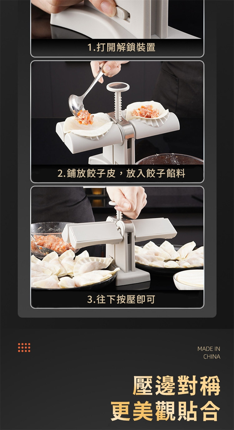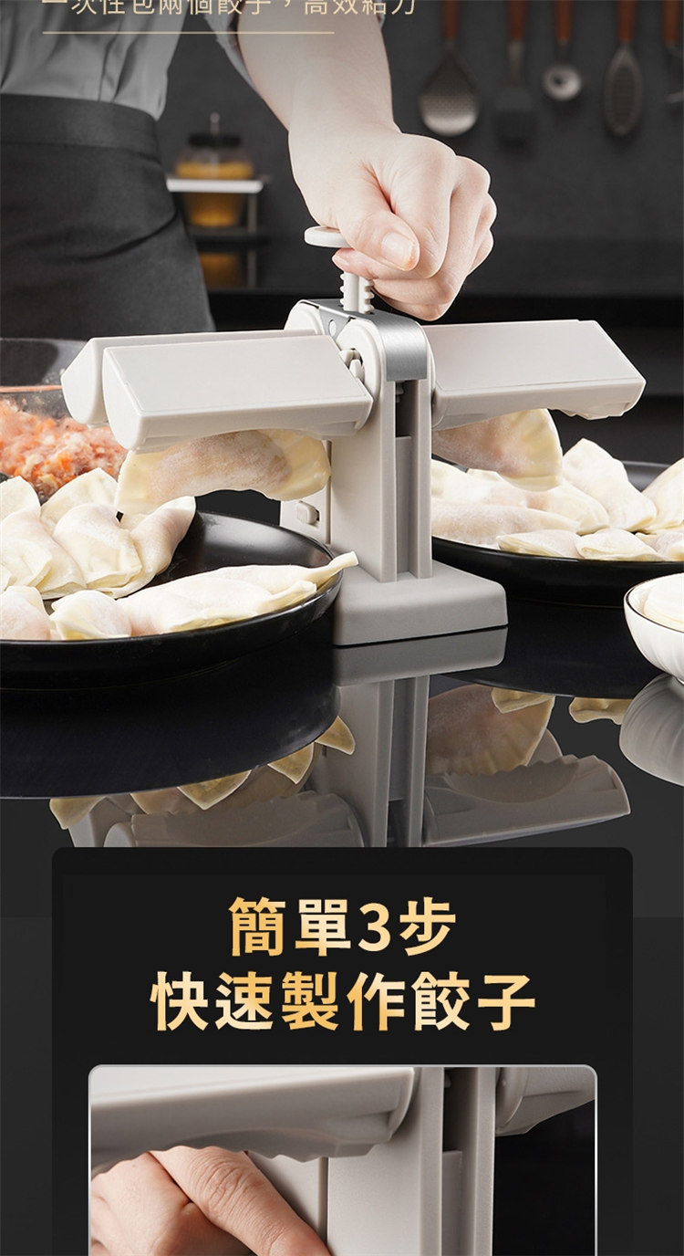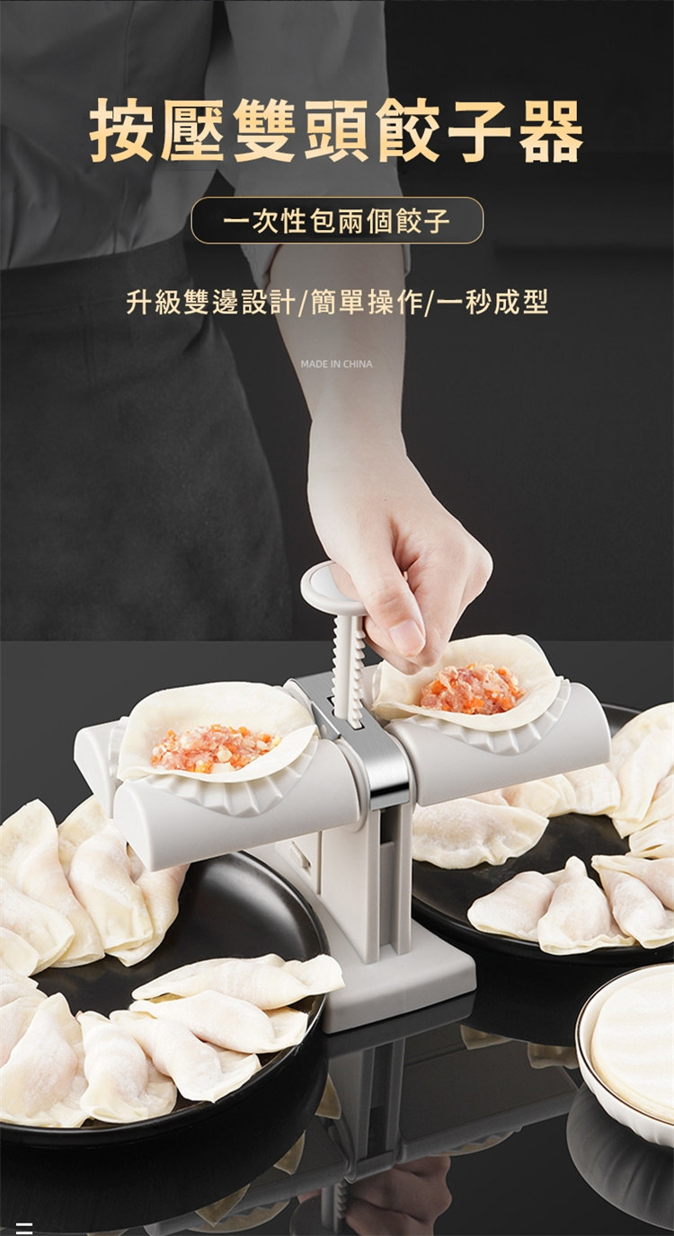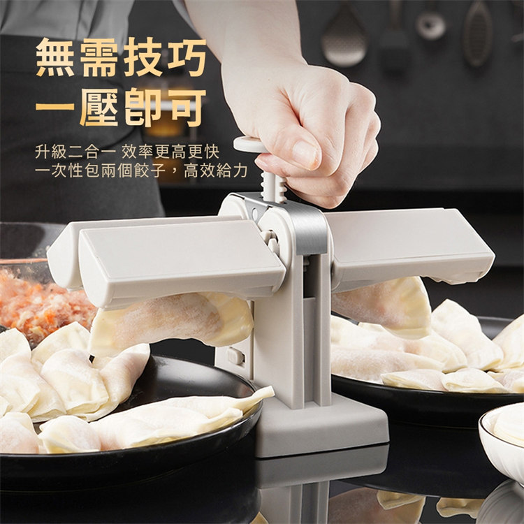 星級飯店級按壓雙頭包餃子機 | 升級雙頭一次包兩個餃子 | 一秒成型傻瓜操作 | 對稱壓邊美型貼合 | 健康ABS材質 | 全功能家用易洗高效包餃子器