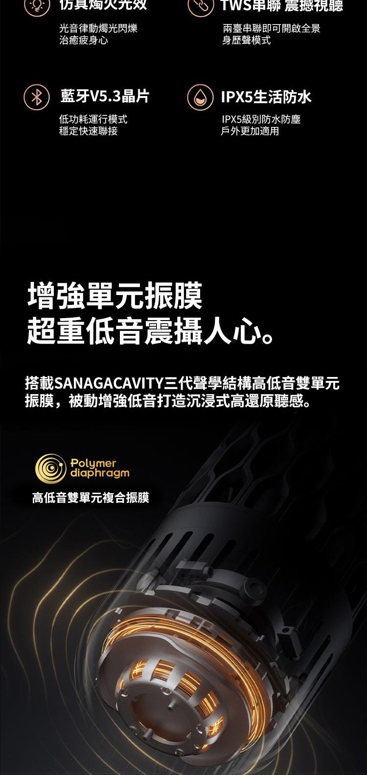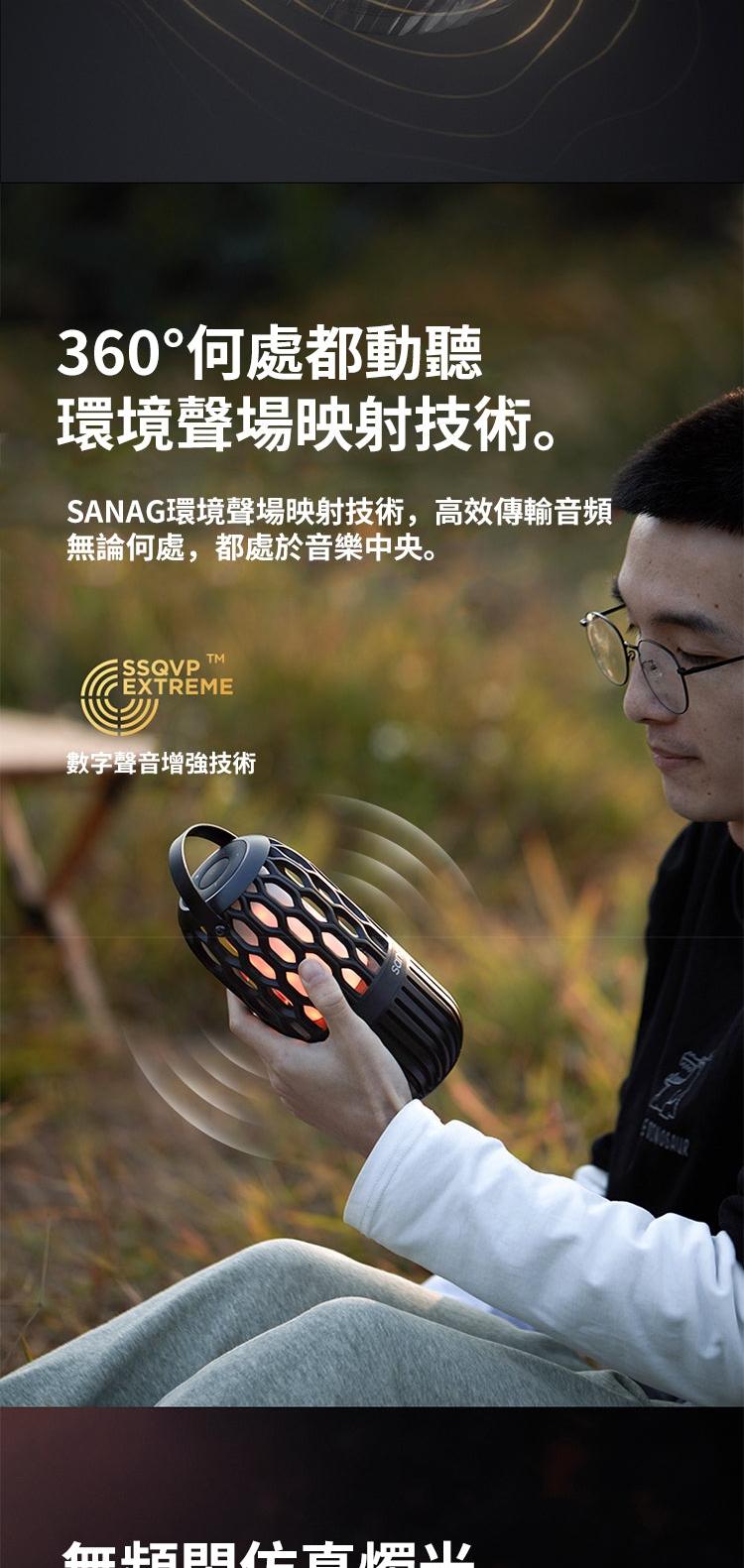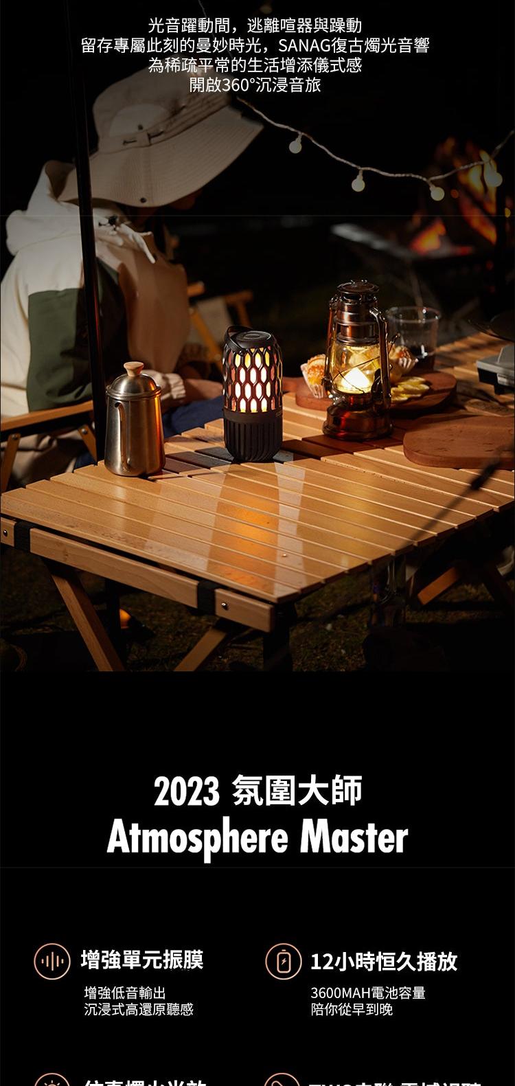 氣氛大師無線藍牙喇叭 | 數位增強環繞聲場 | 浪漫燭光情境 | 12小時超長續航 | 英國SANAG沉浸聽感戶外露營大師燭光音響無線藍牙喇叭