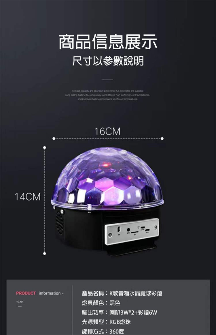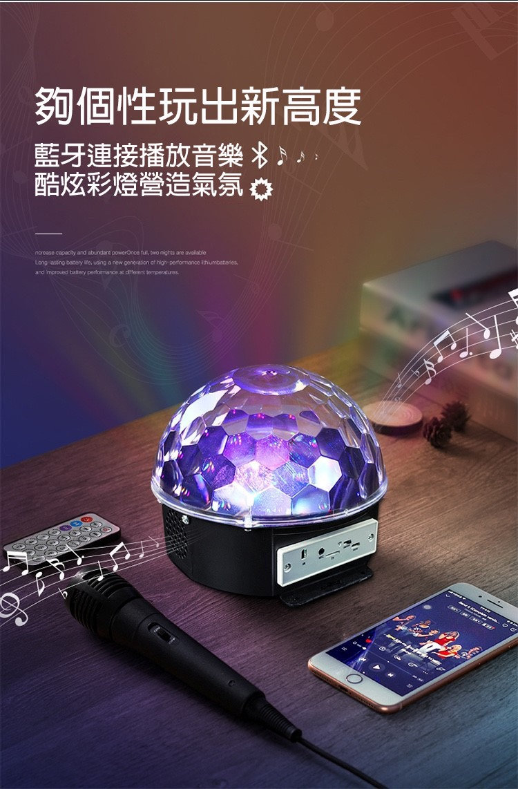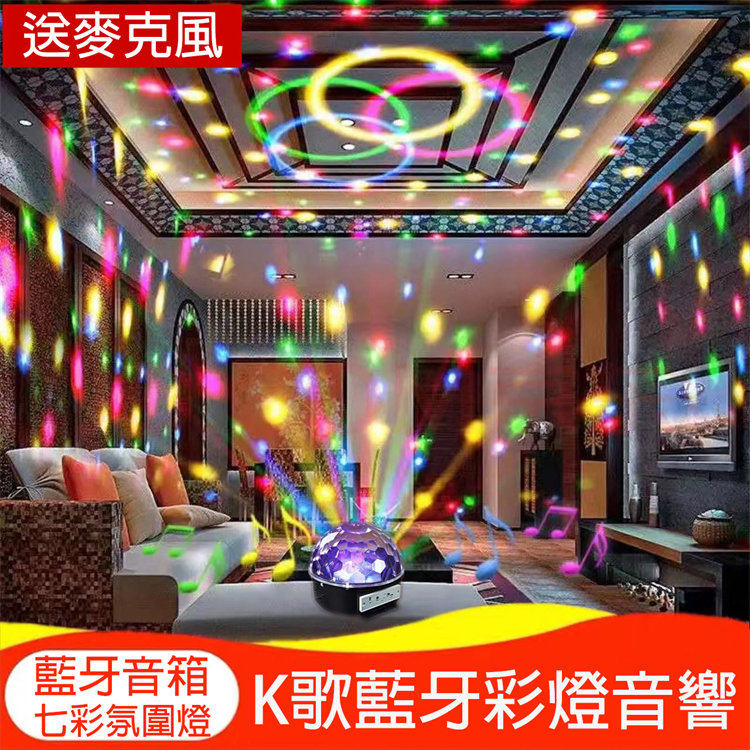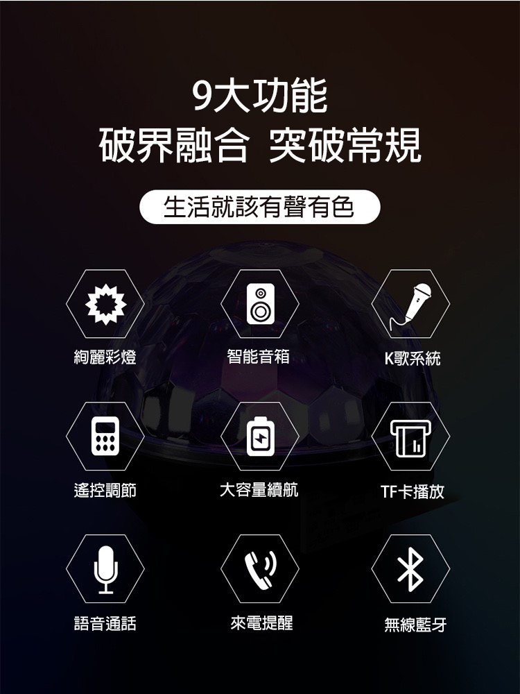 居家K歌神器 | KTV氣氛感藍牙喇叭 | 送麥克風 | 雙喇叭澎湃音效 | 高清話筒清晰動聽 | 9色KTV氣氛燈效 | 浪漫旋轉彩燈無線音響藍牙喇叭