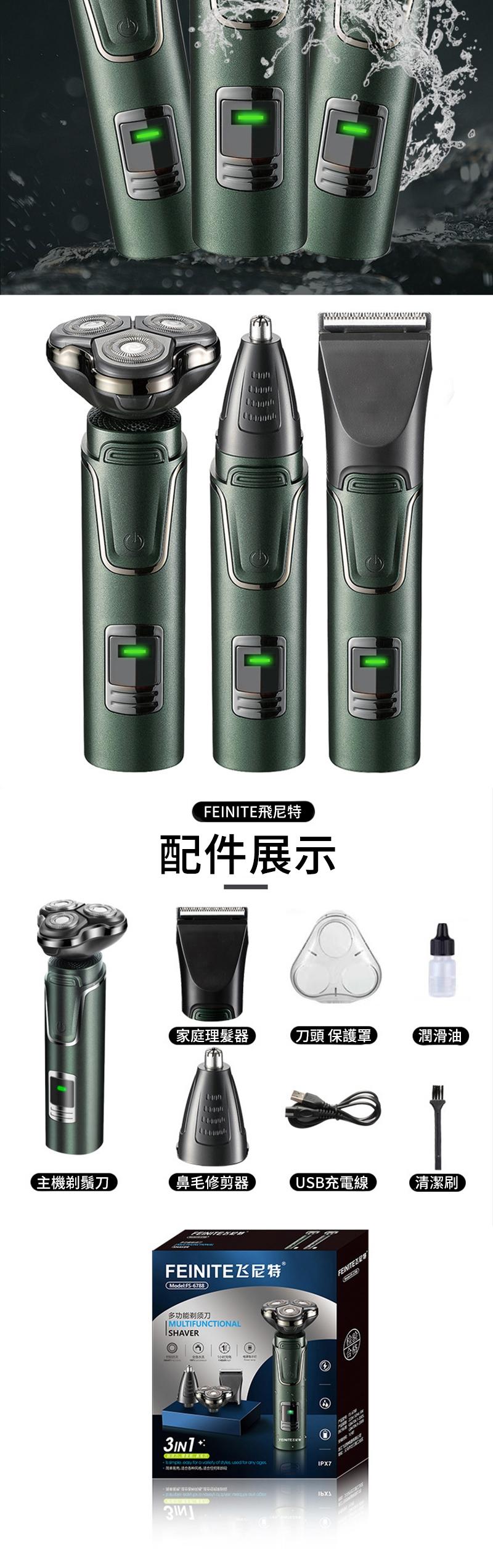 3N1全功能電動刮鬍刀 | 理髮+刮鬍+鼻毛修剪套組 | 360­°浮動貼面三刀頭 | 輕柔聲波順滑科技 | 全身水洗 | LED屏顯 | 三合一理髮刮鬍理容套組