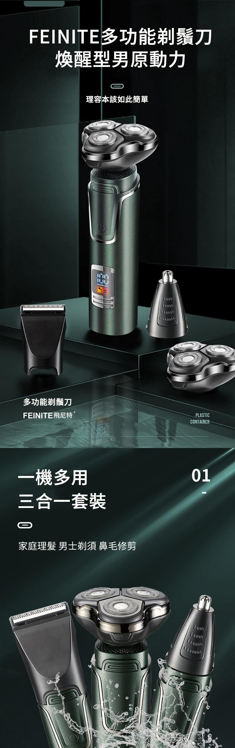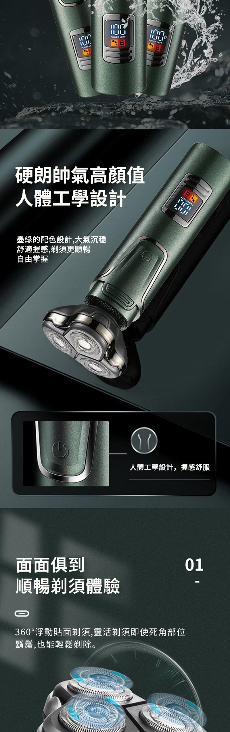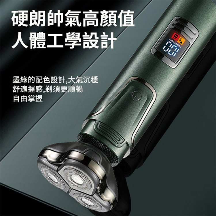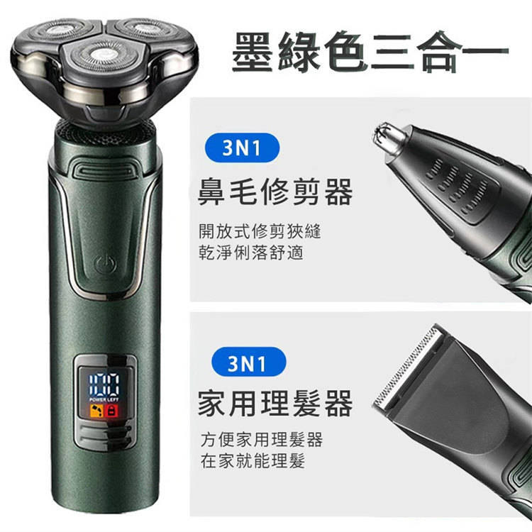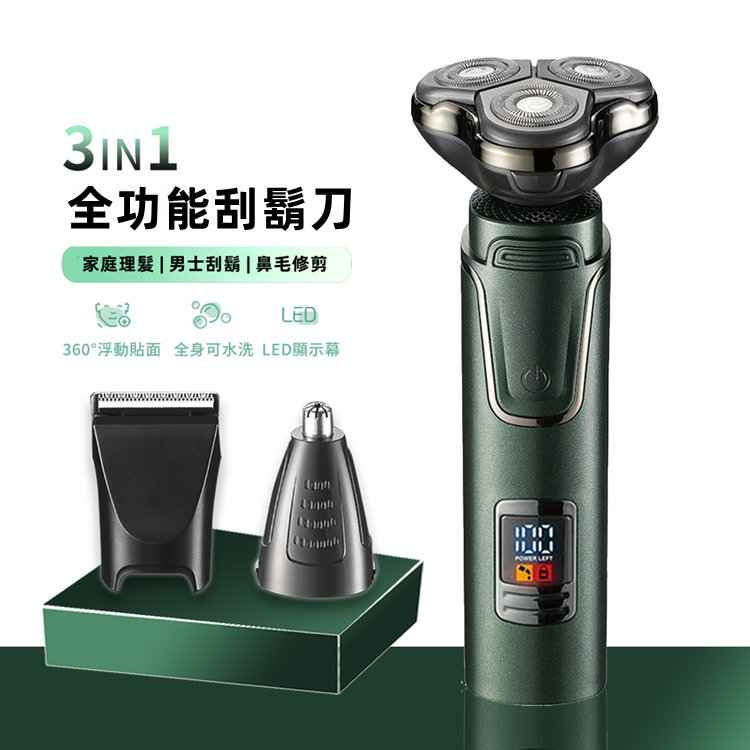 3N1全功能電動刮鬍刀 | 理髮+刮鬍+鼻毛修剪套組 | 360­°浮動貼面三刀頭 | 輕柔聲波順滑科技 | 全身水洗 | LED屏顯 | 三合一理髮刮鬍理容套組