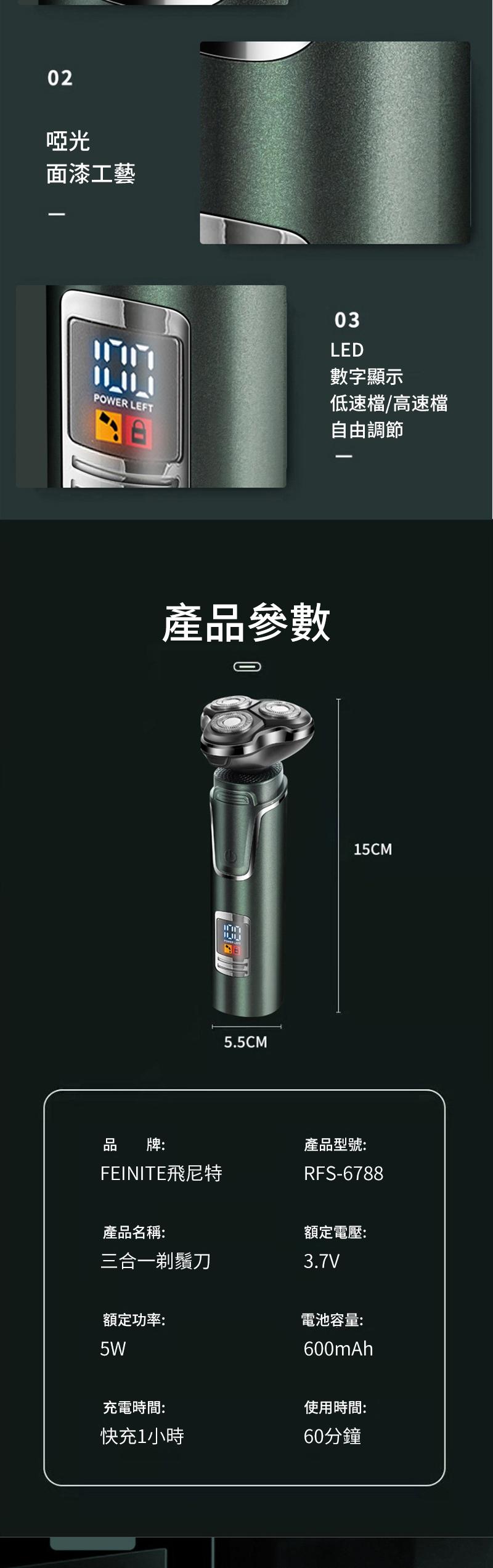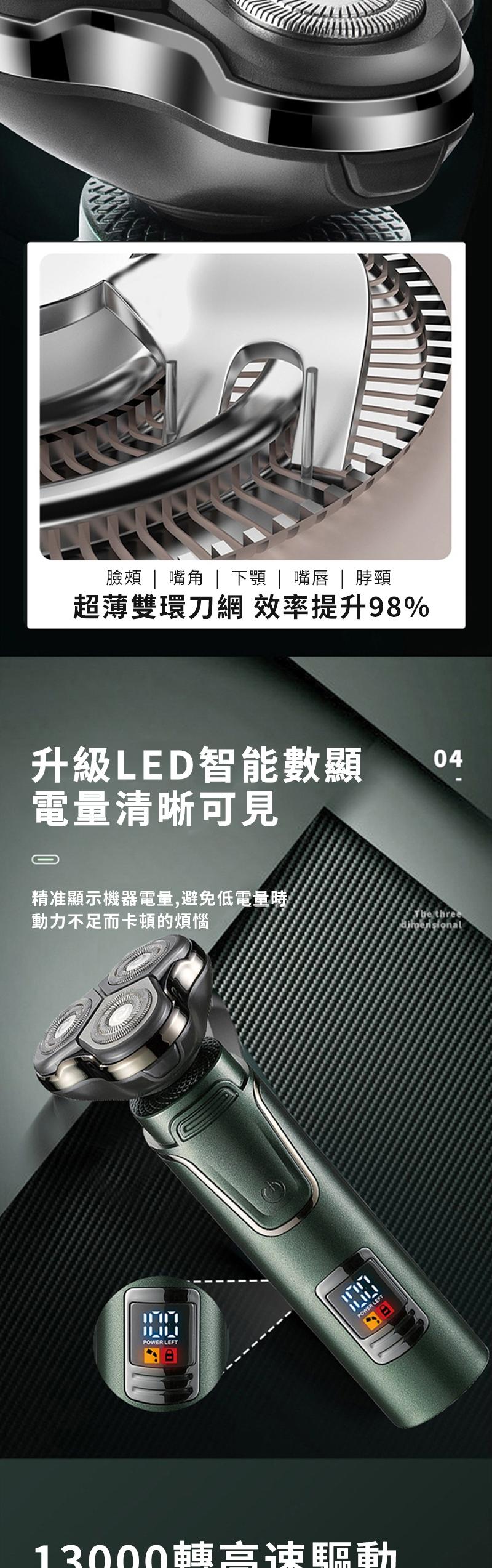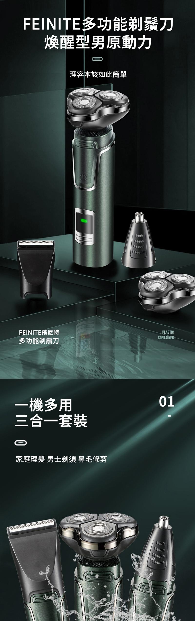 3N1全功能電動刮鬍刀 | 理髮+刮鬍+鼻毛修剪套組 | 360­°浮動貼面三刀頭 | 輕柔聲波順滑科技 | 全身水洗 | LED屏顯 | 三合一理髮刮鬍理容套組