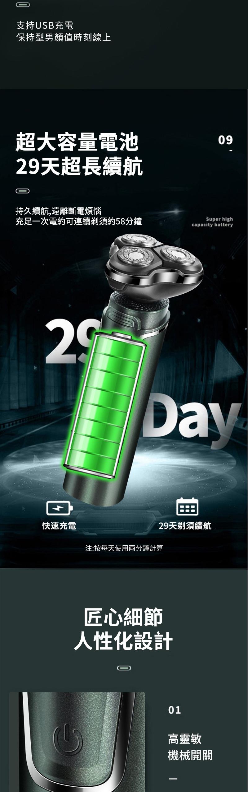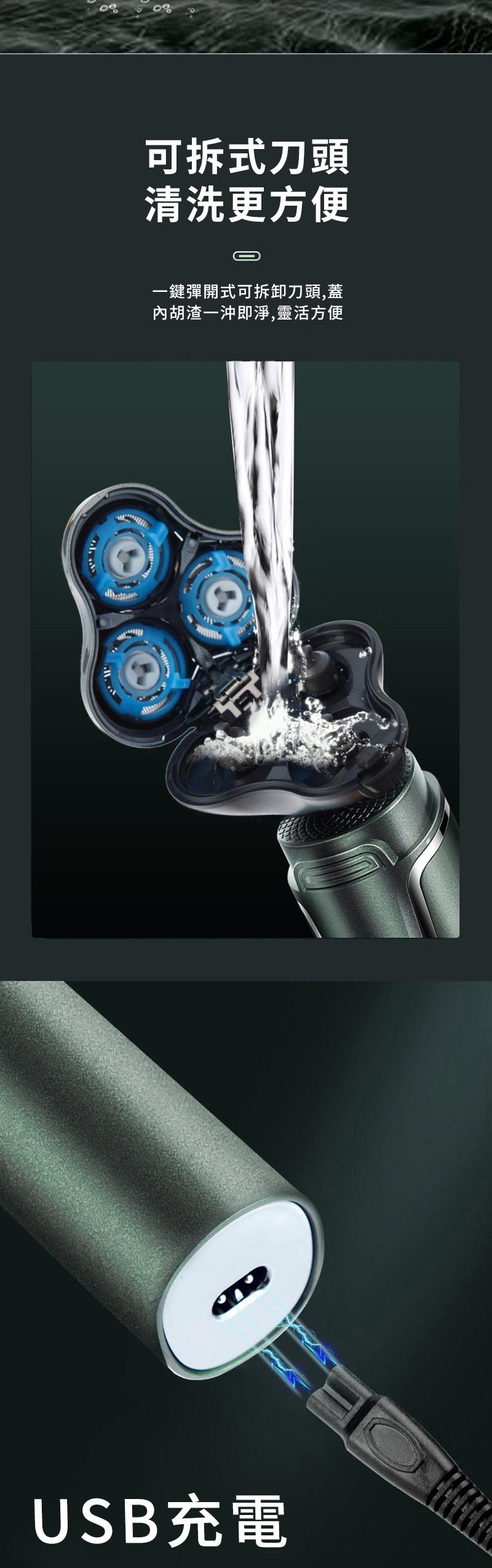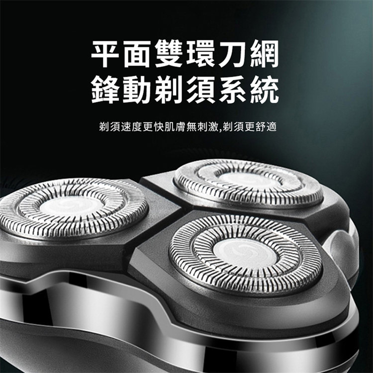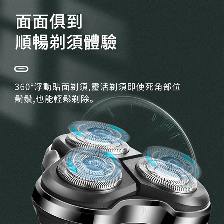 360­°浮動貼面三刀頭,鬍鬚輕鬆剃除
