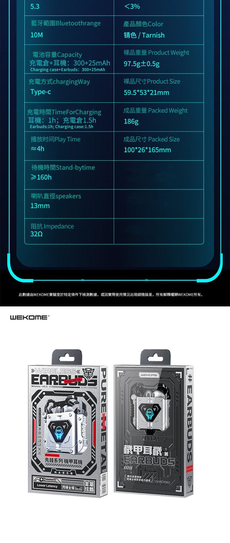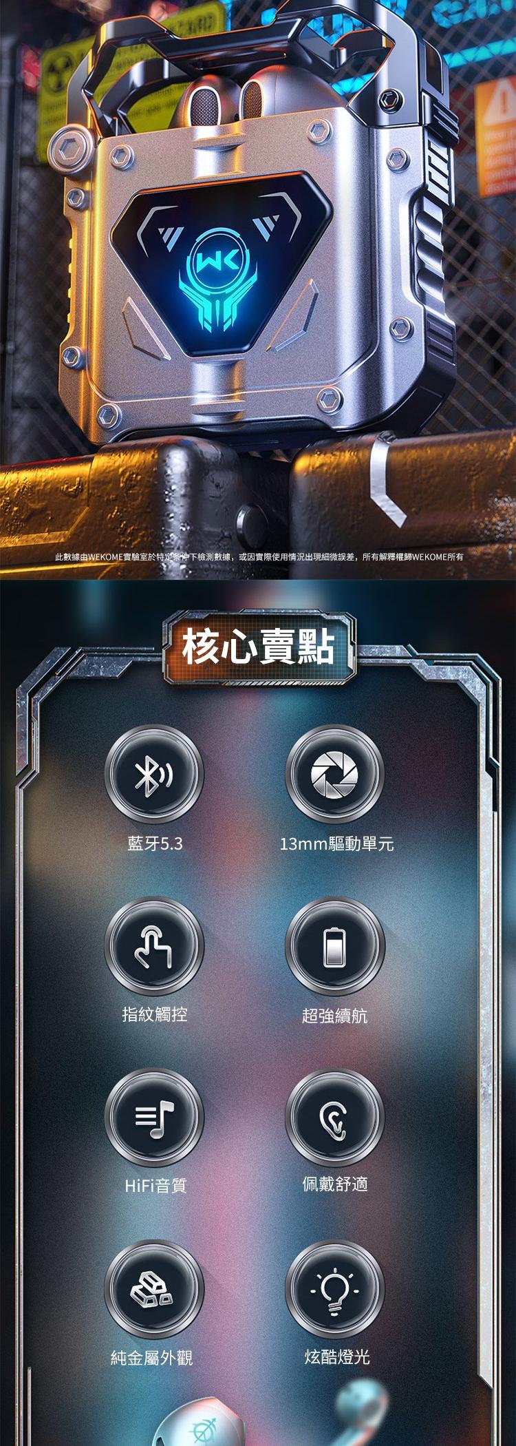 機甲先鋒太空艙耳機 | 純鋅合金艙體 | 13mm大動圈 | 沉浸式CD級音質體驗 | 淺入耳舒適佩戴 | 智慧觸控操作 | WEKOME機甲系列真無線藍牙耳機