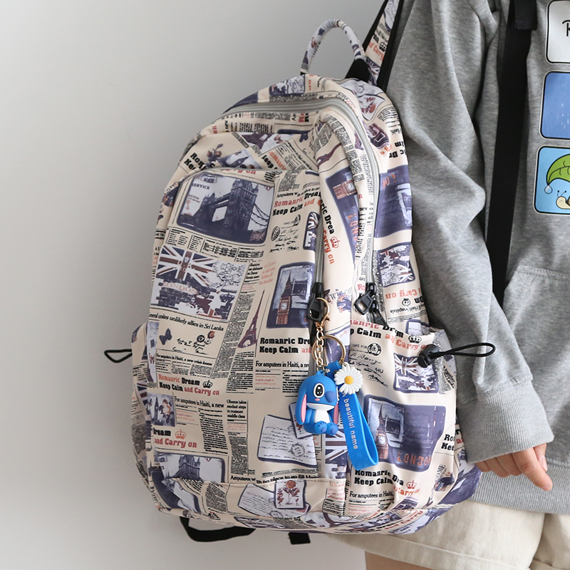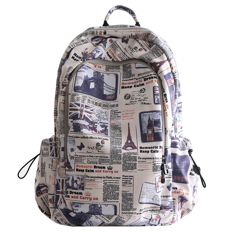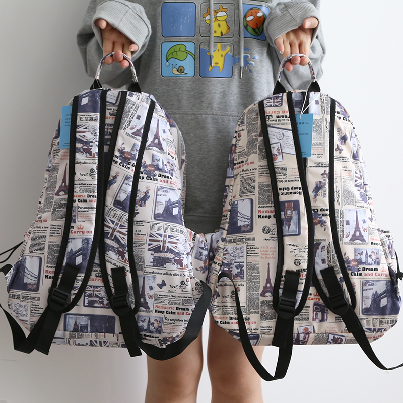 潮流時尚地标圖大容量雙肩包男女書包大學生新款雙肩後背包