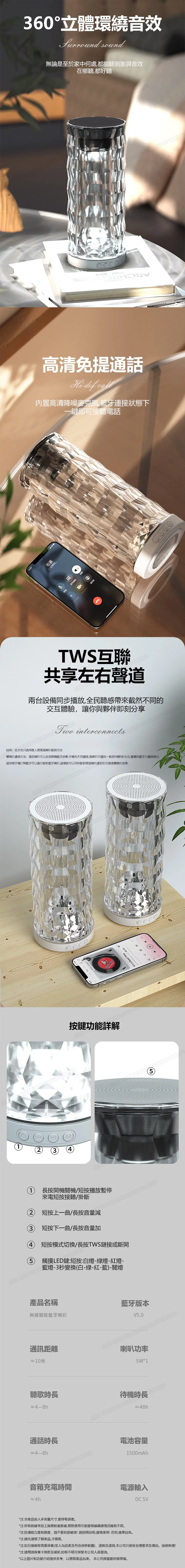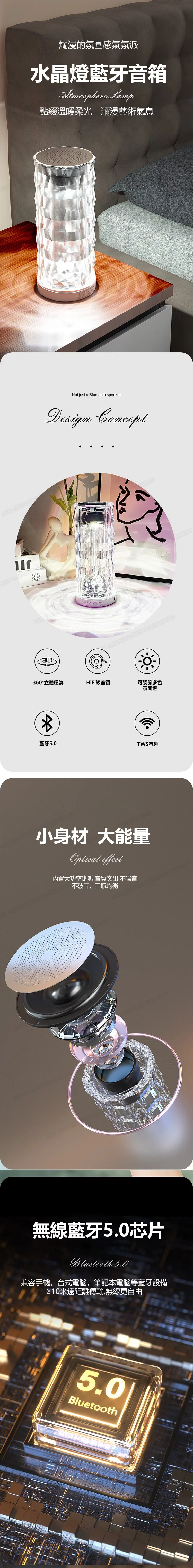 玫瑰水晶藝術無線藍牙喇叭 | 360立體環繞聲 | HIFI級音質 | 多色氣氛情境燈光 | 高清降噪免提通話 | 曼妙情景氣氛感水晶音響無線藍牙喇叭