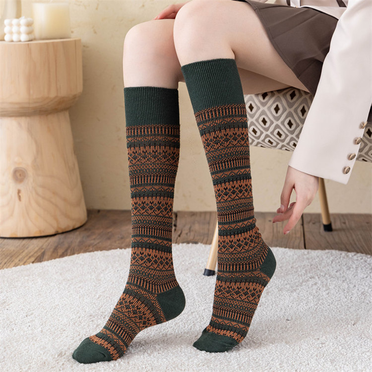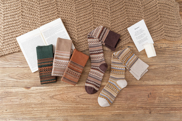 超值混色五雙入 | 軟糯親膚舒適不勒 | 加固耐磨耐洗滌 | 透氣防臭 | 秋冬復古奶茶色系復古條紋波點清新除臭高筒小腿襪保暖女長襪子