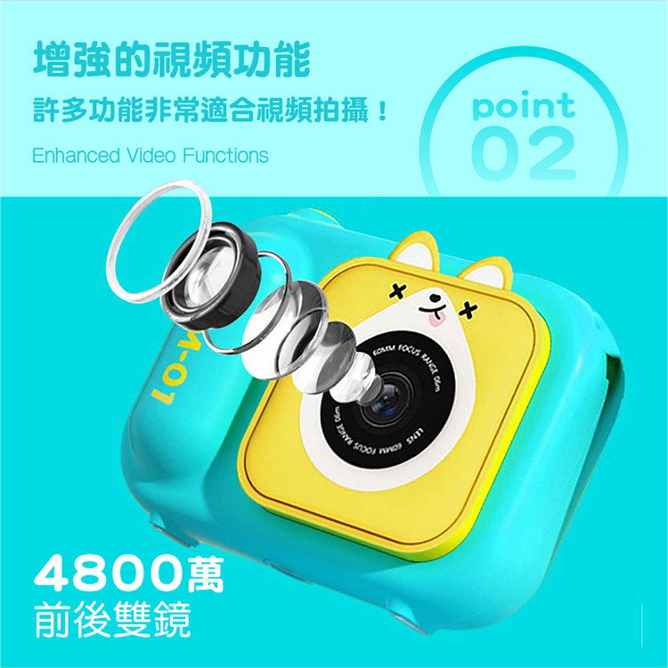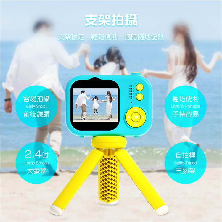 小小攝影師兒童數位相機套組 | 送腳架+32G記憶卡+讀卡器 | 4800像素前後雙攝 | 1080P高清錄影 | 智慧對焦 | 高CP值全功能兒童數位相機套組