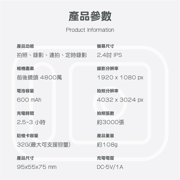 ● 2.4吋超大螢幕+前後雙鏡頭4800萬畫素+720P攝影功能