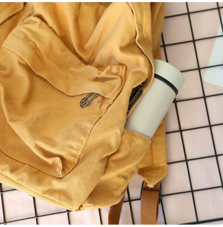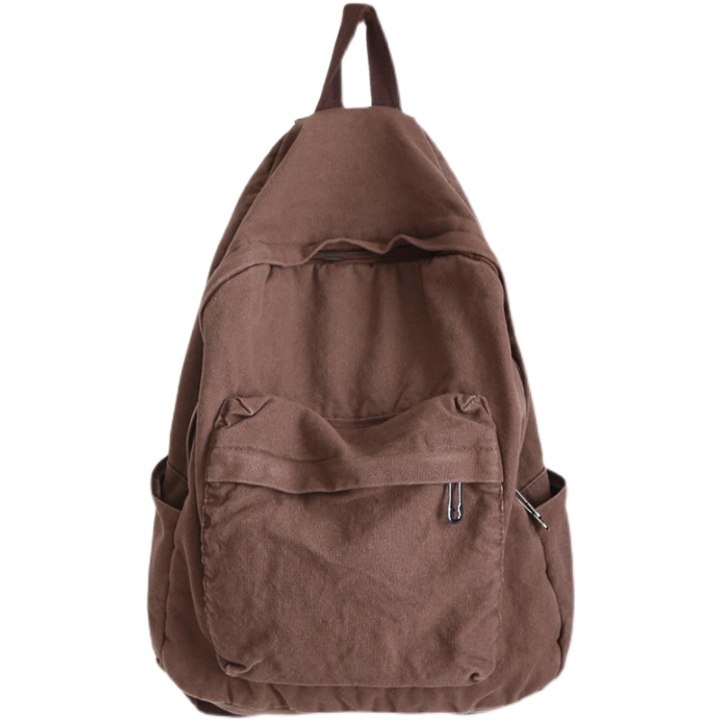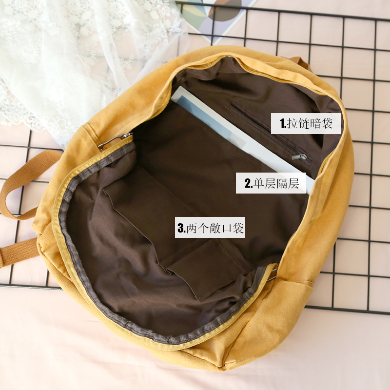 複古做舊褶皺帆布時尚雙肩包男女日韓純色書包大學生背包雙肩後背包