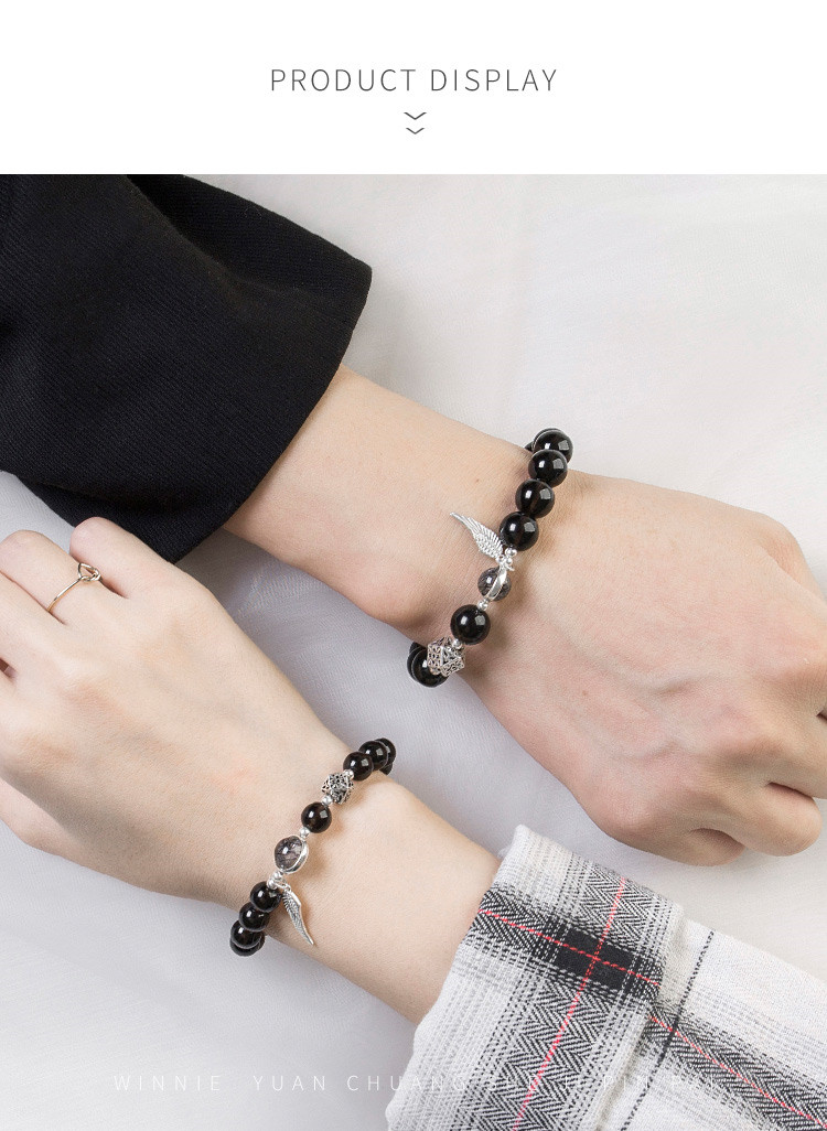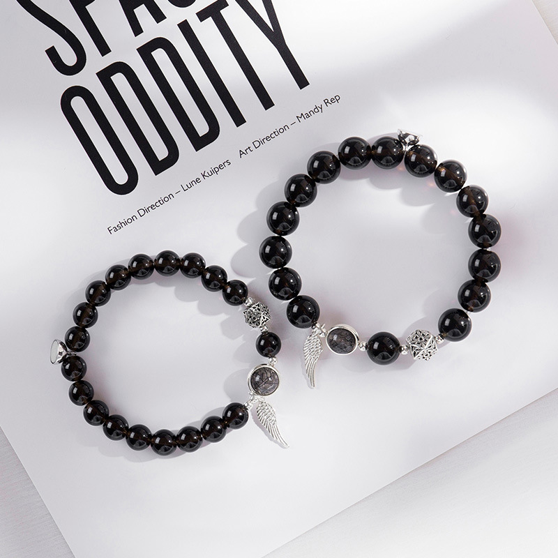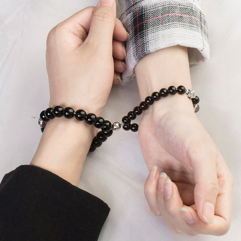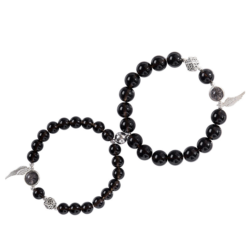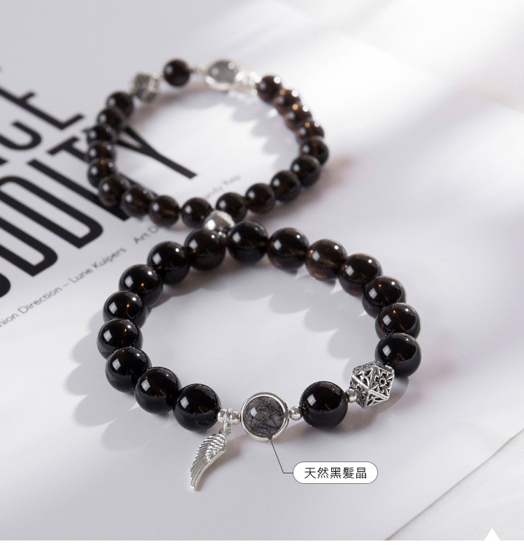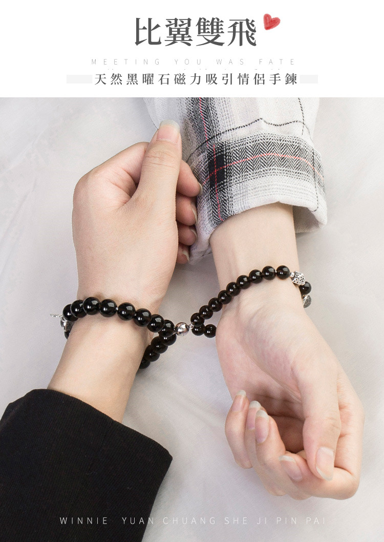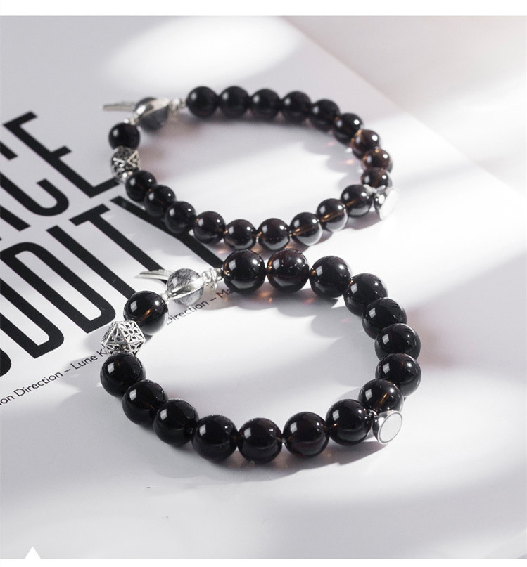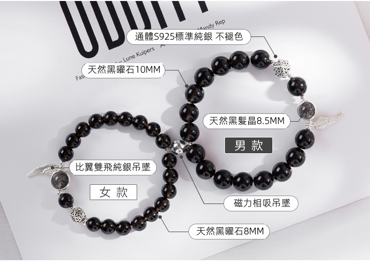 愛情引力 | 天然黑曜石黑髮晶 | S925純銀吊墜 | 超讚磁力吸引設計天然黑曜石黑髮晶配925純銀男女情侶幸運水晶手鍊