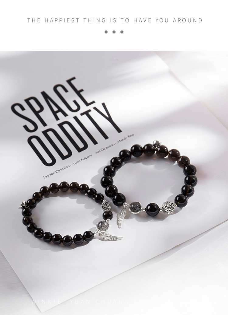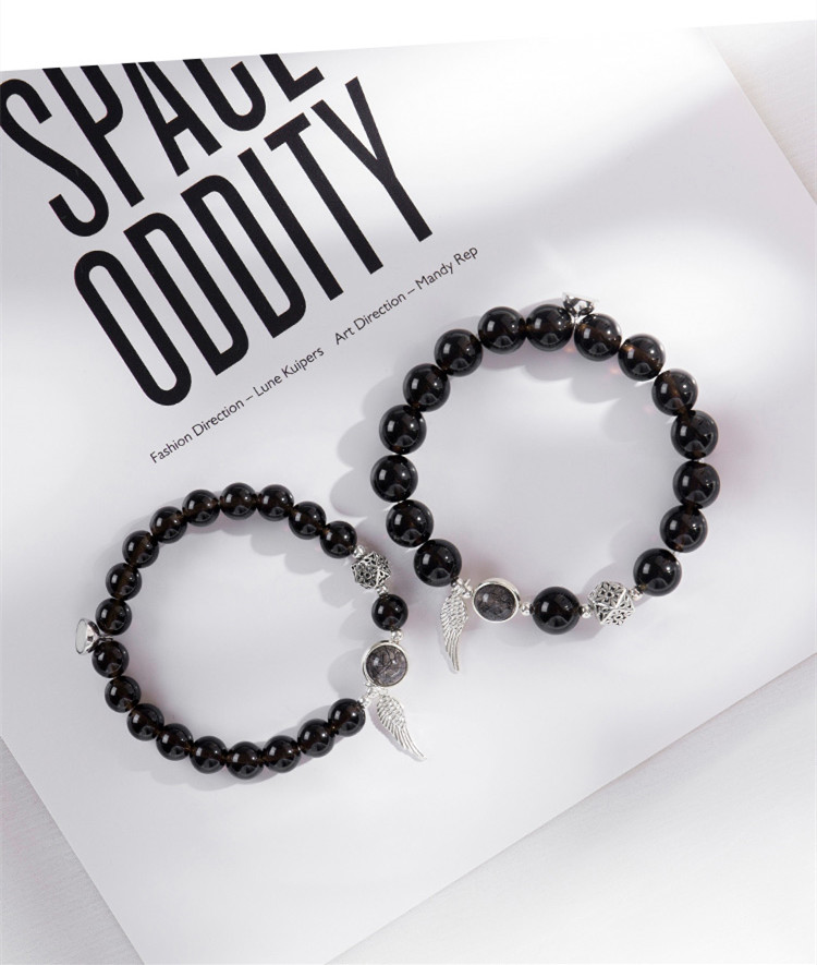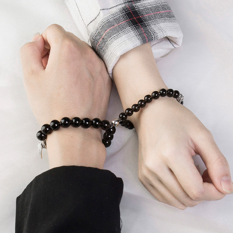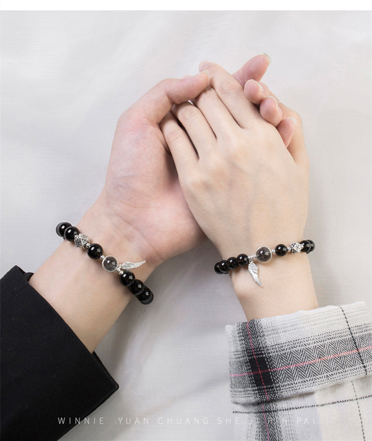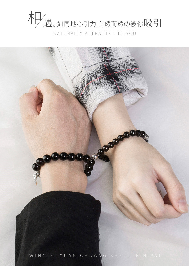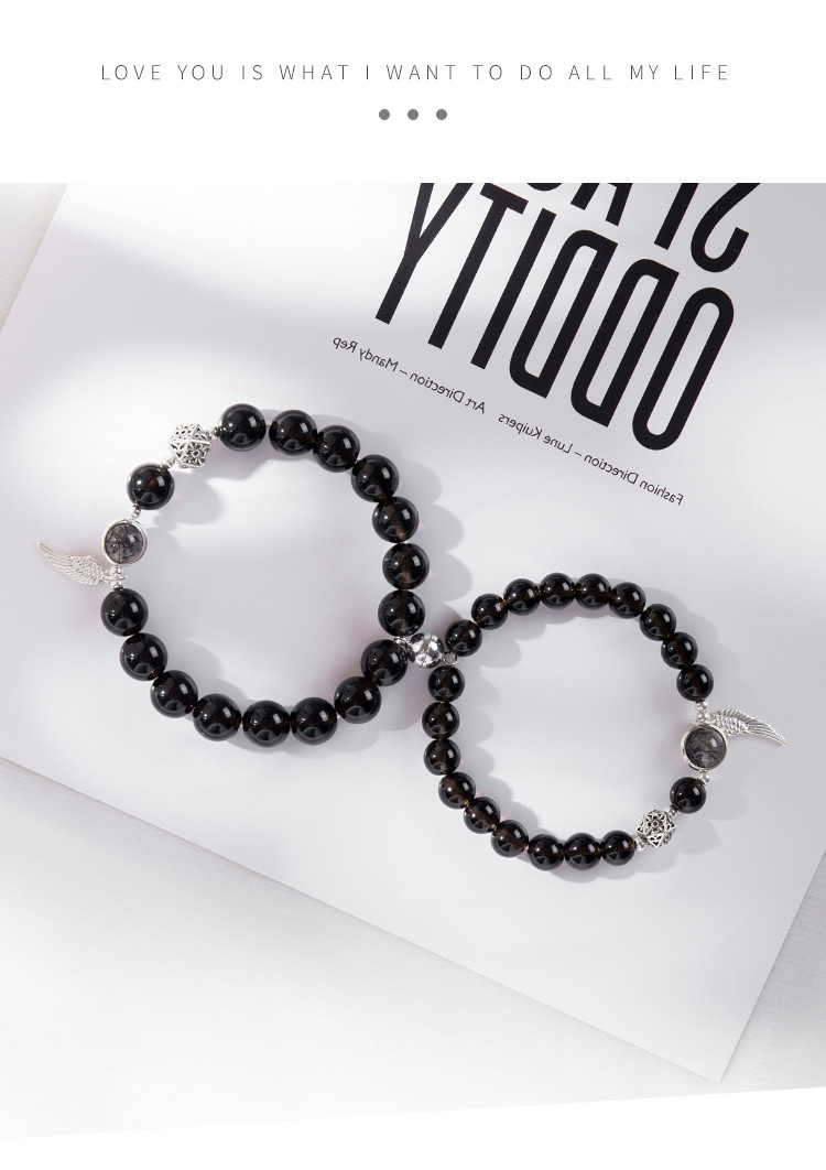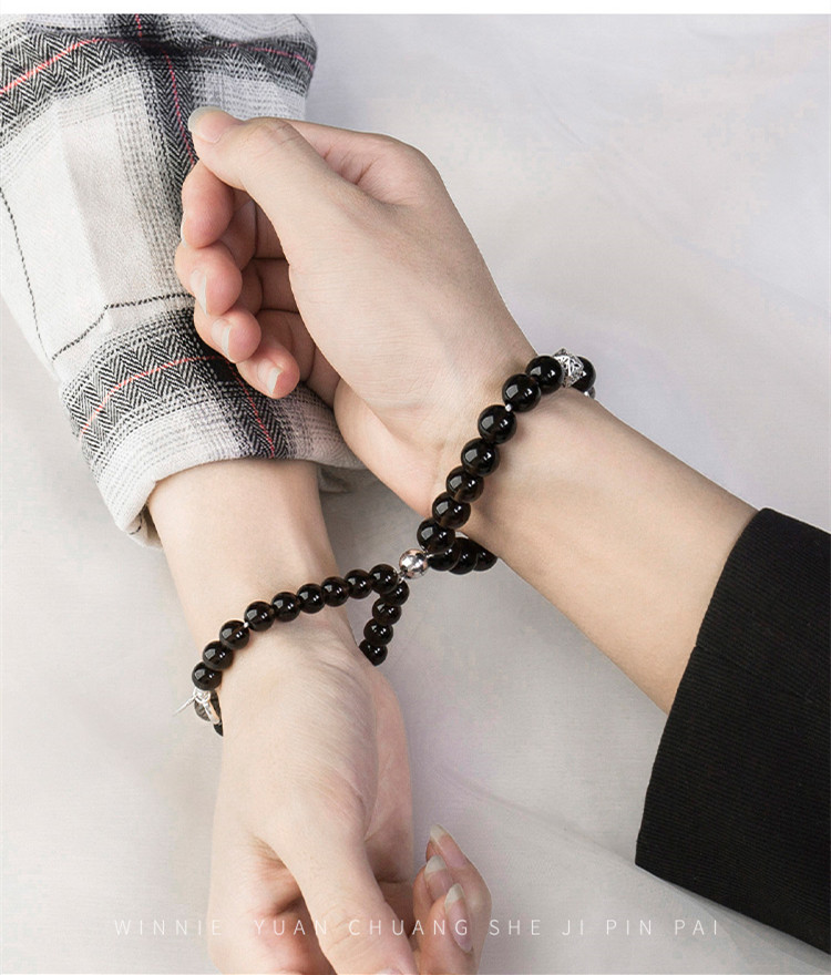愛情引力 | 天然黑曜石黑髮晶 | S925純銀吊墜 | 超讚磁力吸引設計天然黑曜石黑髮晶配925純銀男女情侶幸運水晶手鍊