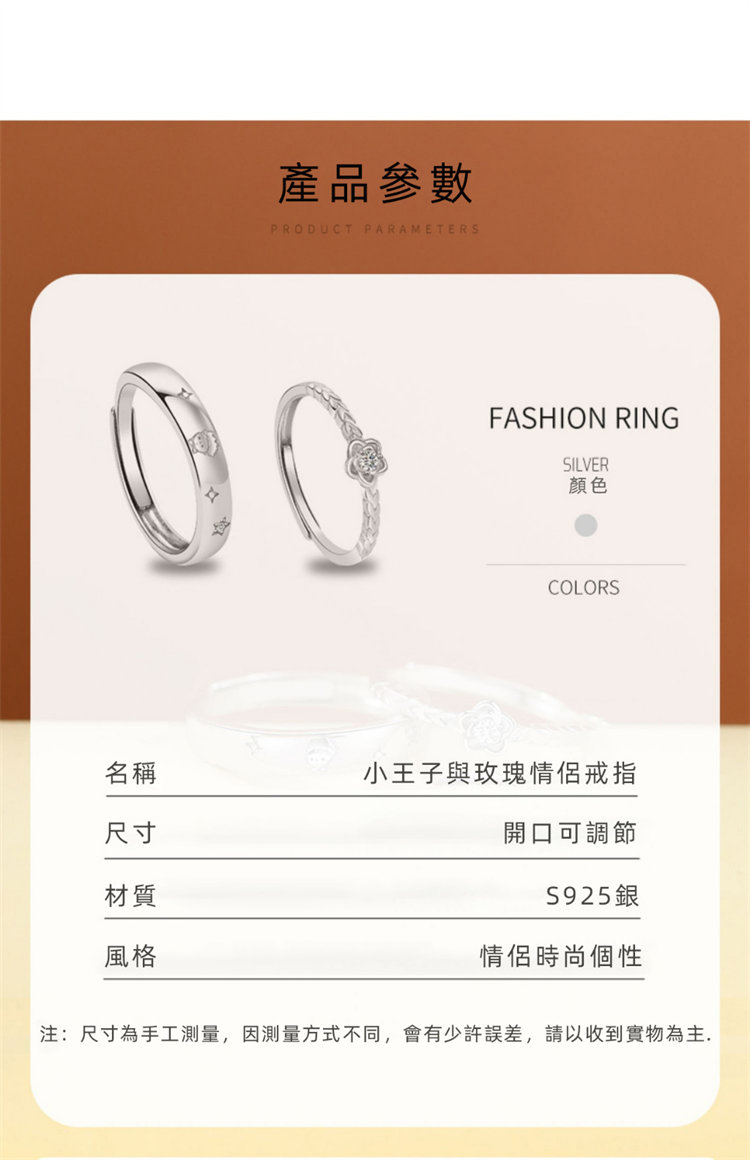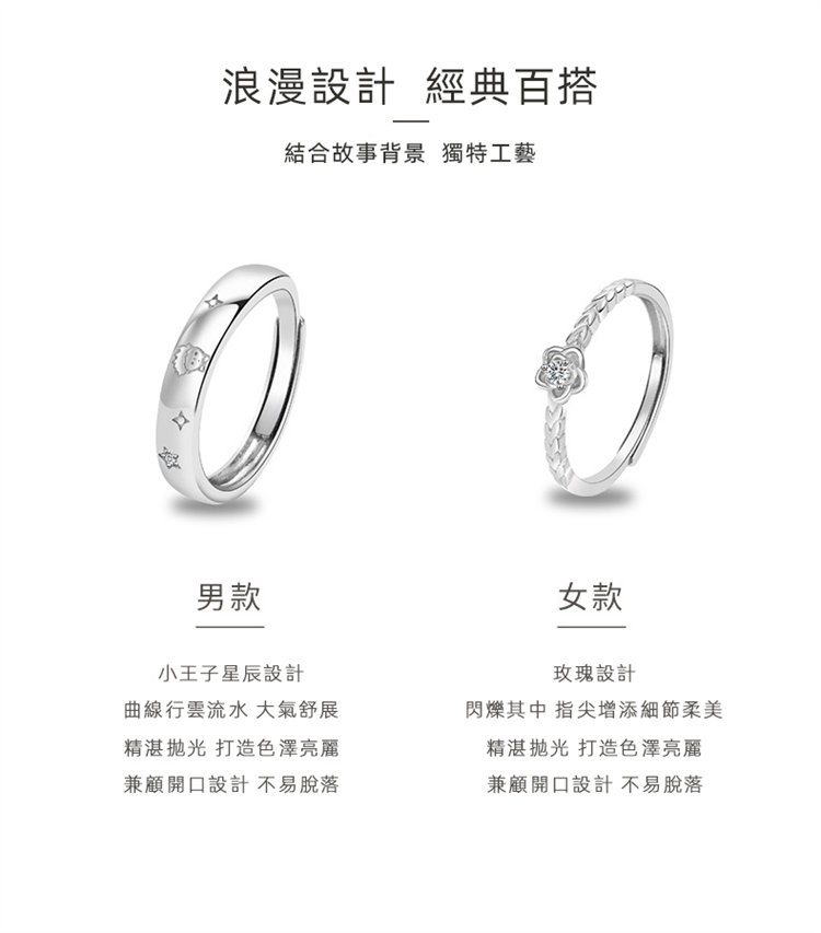 現貨快出小王子和他的玫瑰 | S925純銀 | 正版小王子和玫瑰純銀男女戒指情侶對戒浪漫告白送女朋友禮物情侶飾品