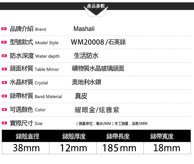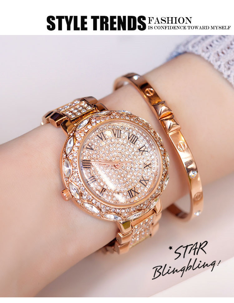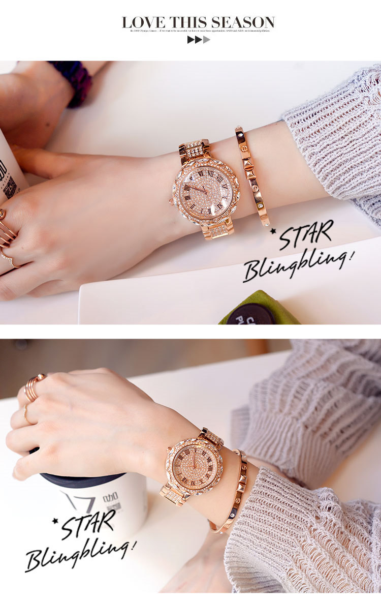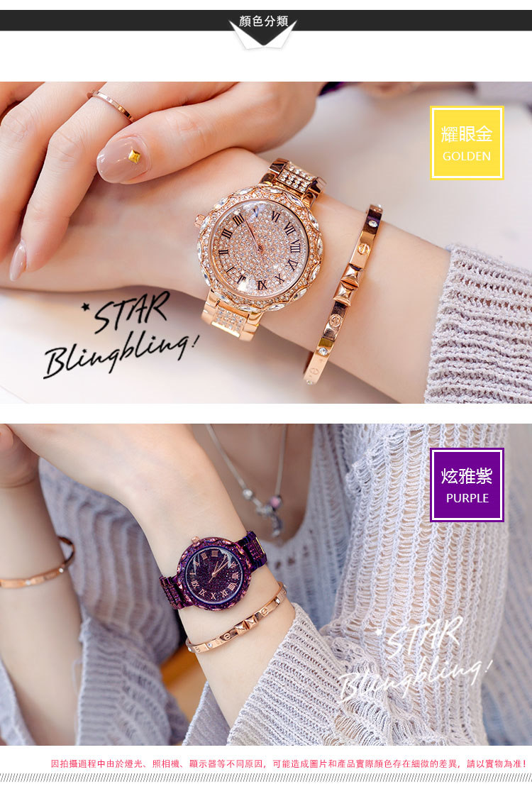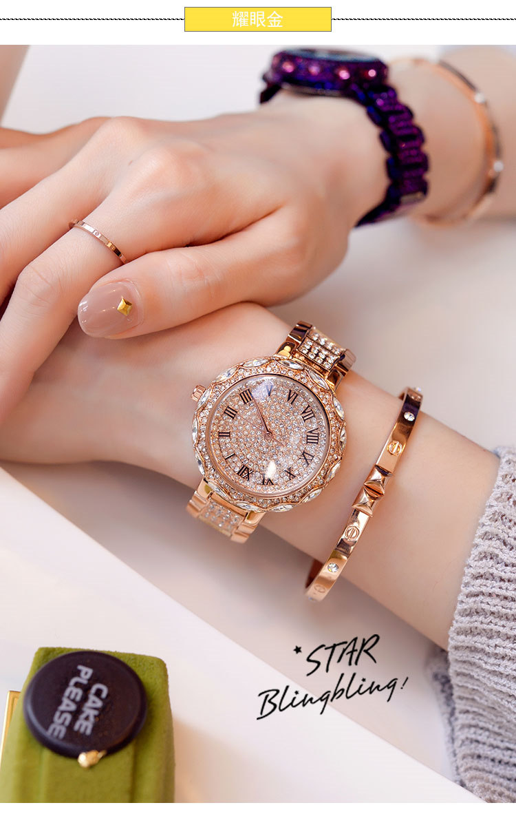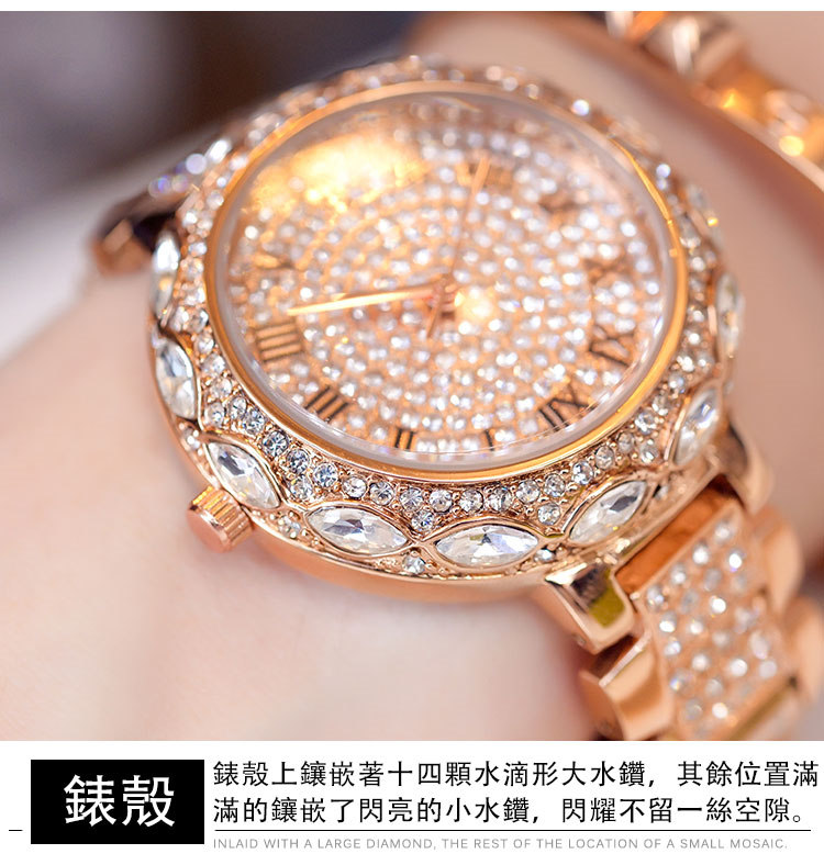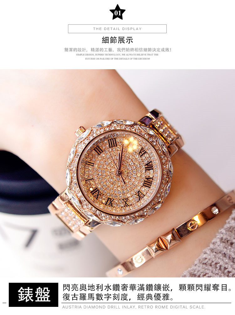 閃亮奧地利水鑽奢華鑲嵌整個錶身,閃耀奪目