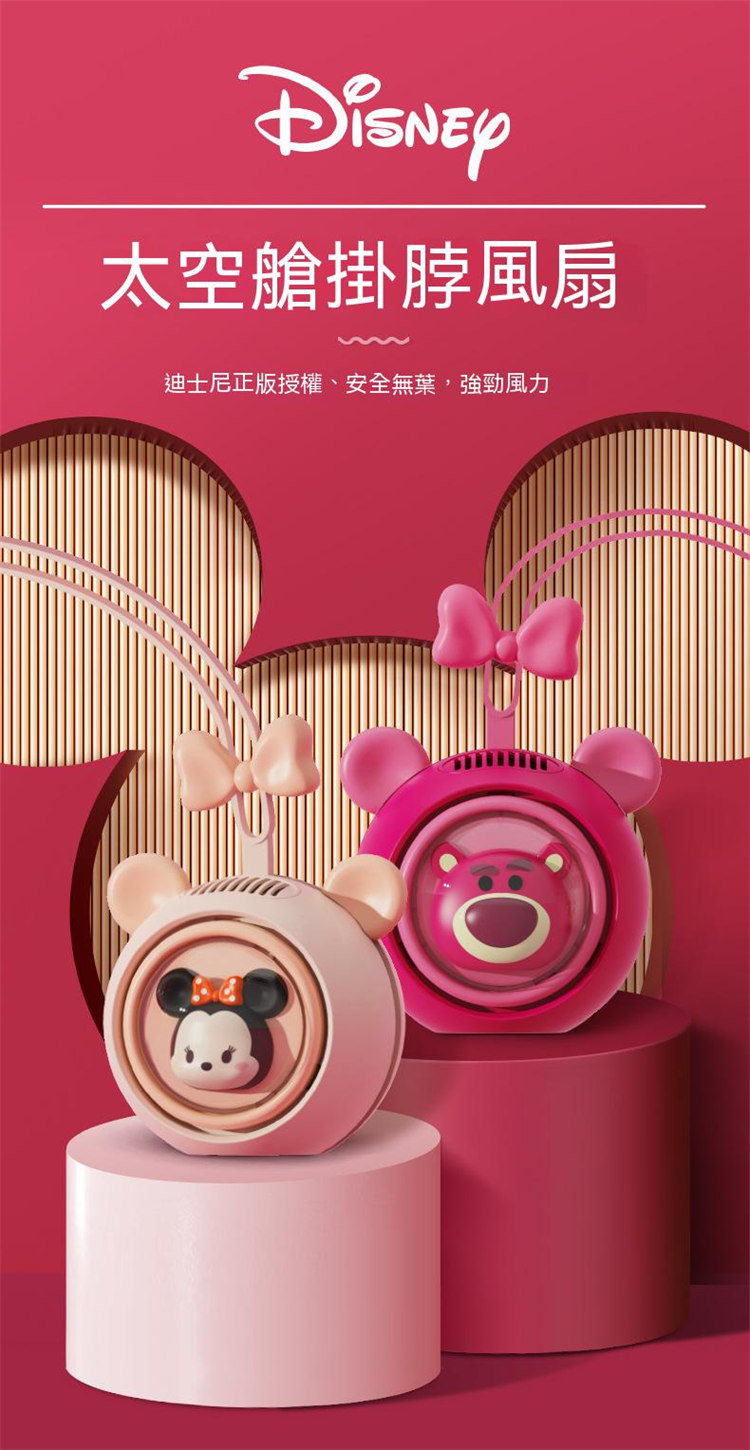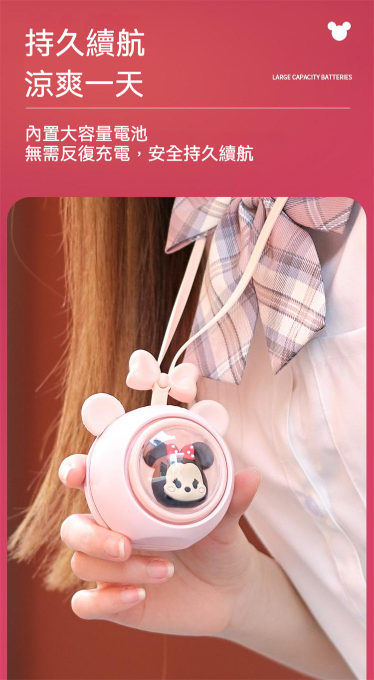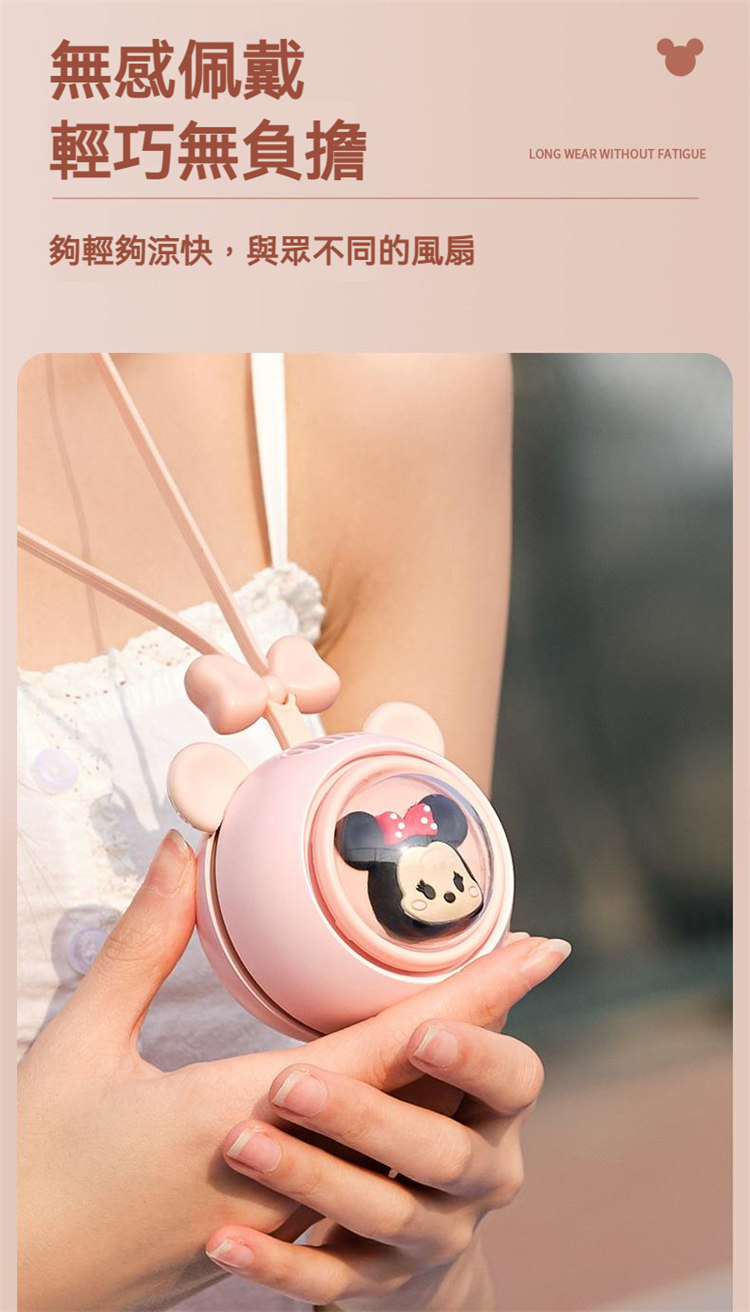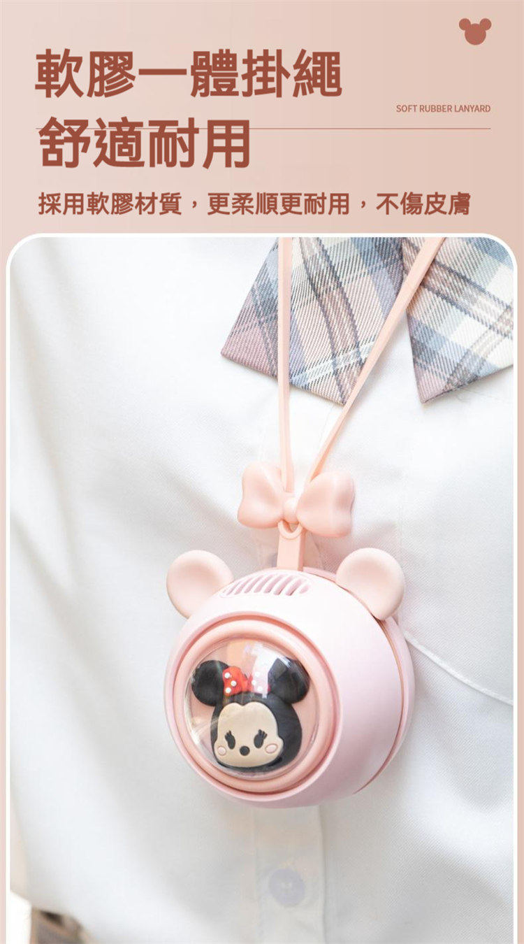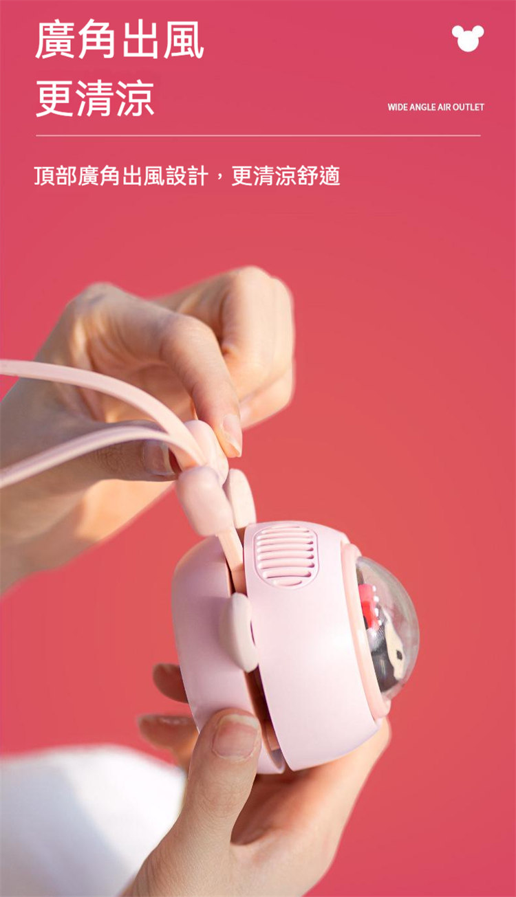 米奇掛脖太空艙掛脖風扇 | 安全無葉不絞髮 | 強勁風力三檔可調 | 廣角出風自然涼感 | 舒適矽膠掛繩 | 正版授權萌寵造型太空艙USB無線隨身風扇