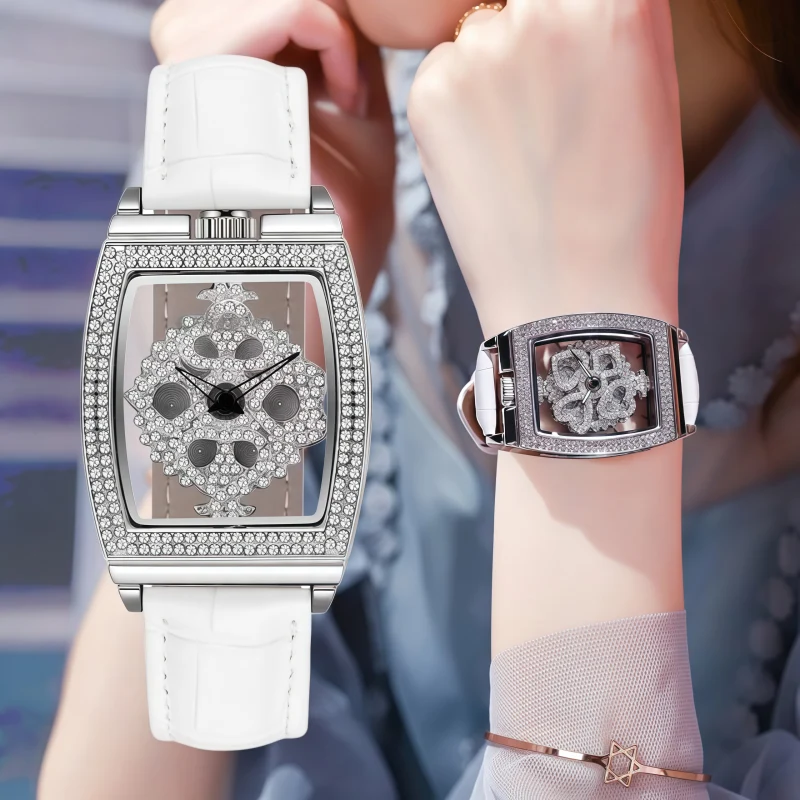 女錶・時來運轉 | 360度隨動旋轉錶盤 | 滿鑲奧地利水鑽 | 小牛皮真皮錶帶 | 30米防水 | 超好寓意時來運轉女生開運手錶