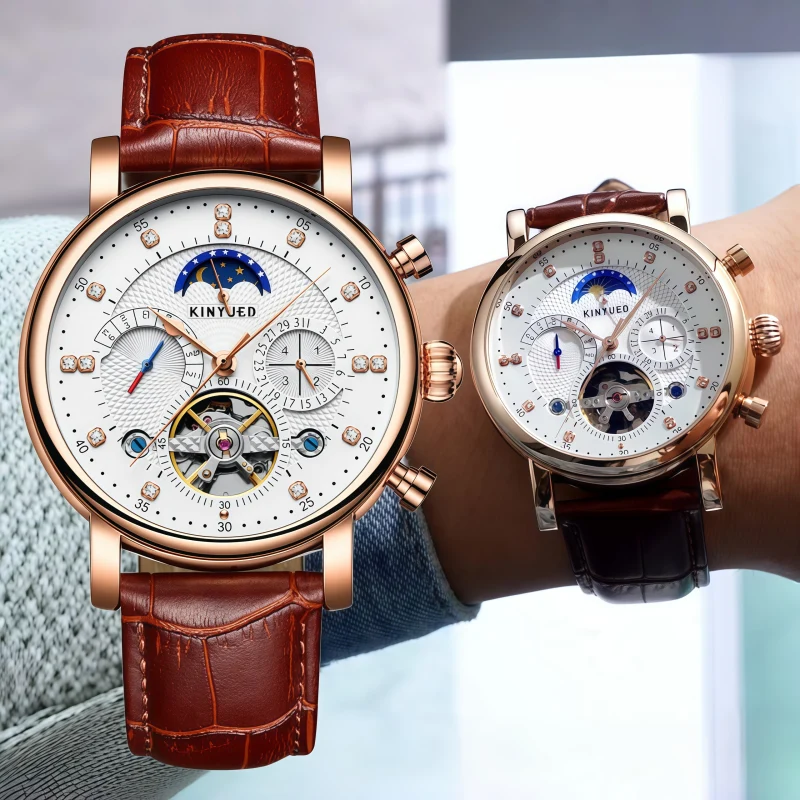 男錶・機械・文藝復興 | 鏤空可視陀飛輪機械機芯 | 日月星辰視窗 | 星期日曆指示 | 小牛皮錶帶 | 30米強壓防水 | 古典浪漫男士全自動機械錶