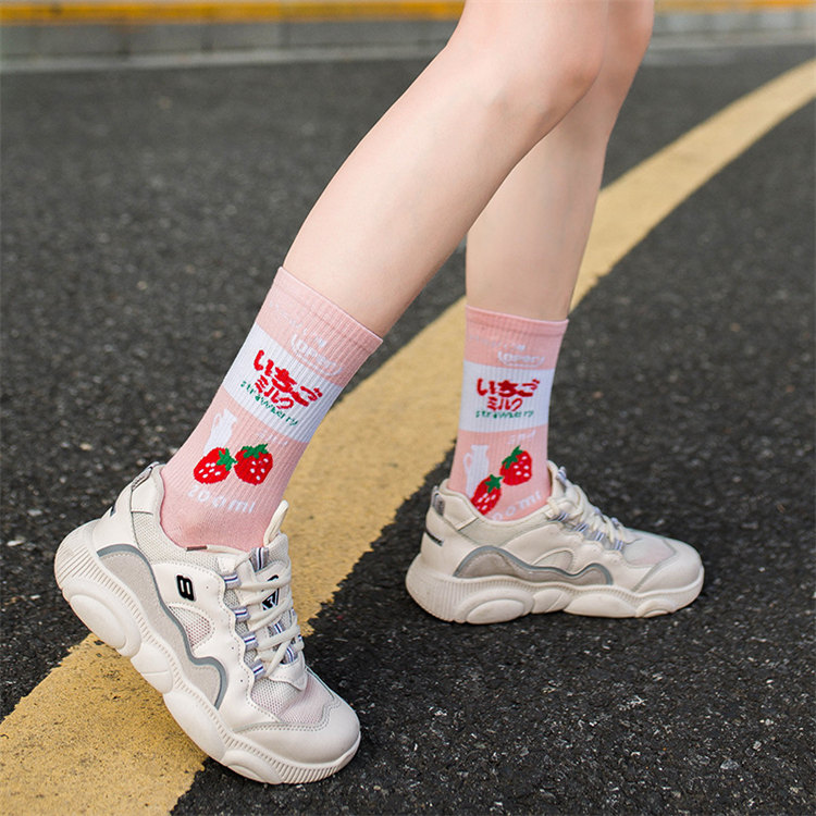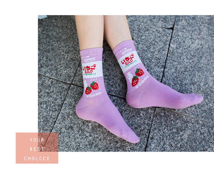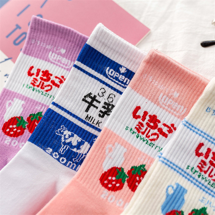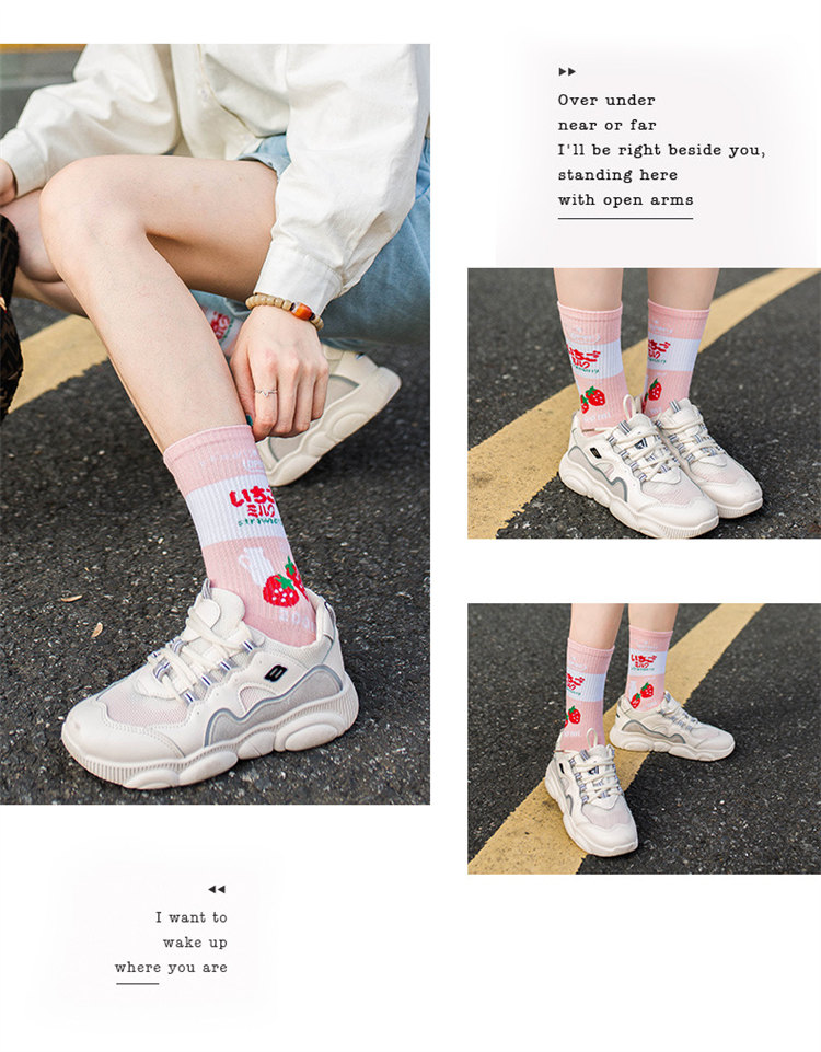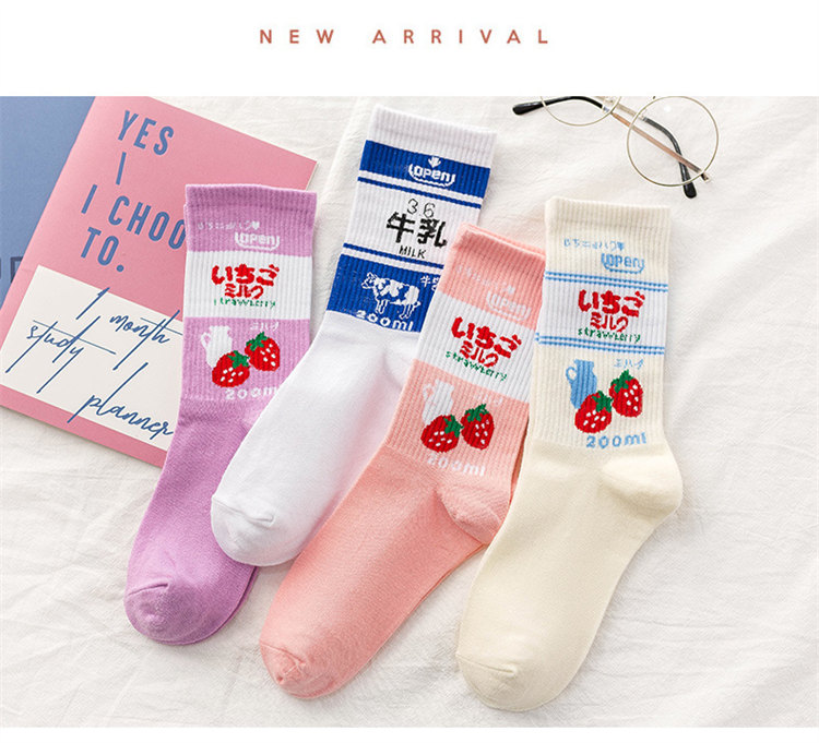 超值混色四雙入 | 軟糯棉質保暖親膚 | 草莓牛乳甜蜜色系 | 加固耐磨耐洗滌 | 透氣防臭 | 草莓牛乳甜蜜色系親膚舒適清新除臭男女襪子
