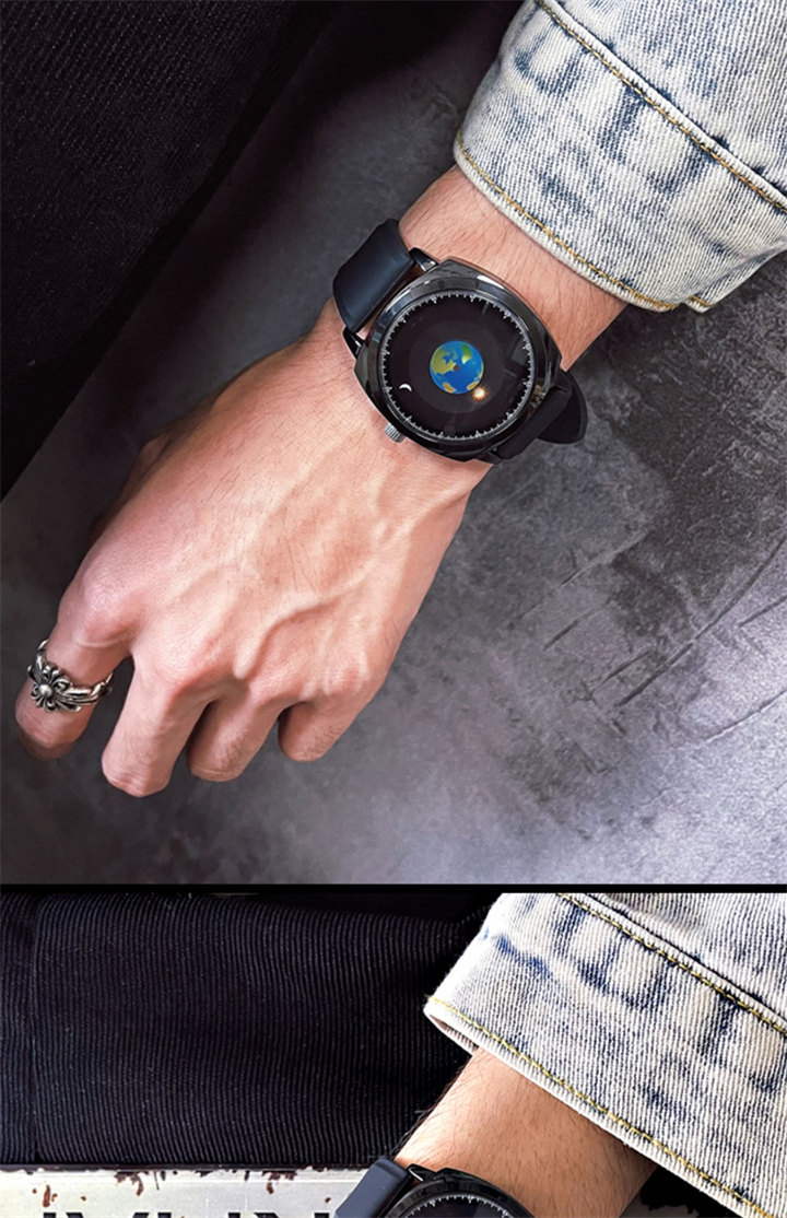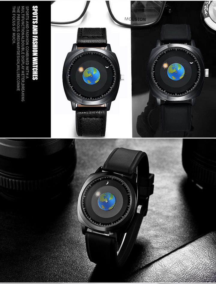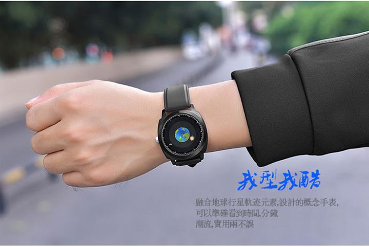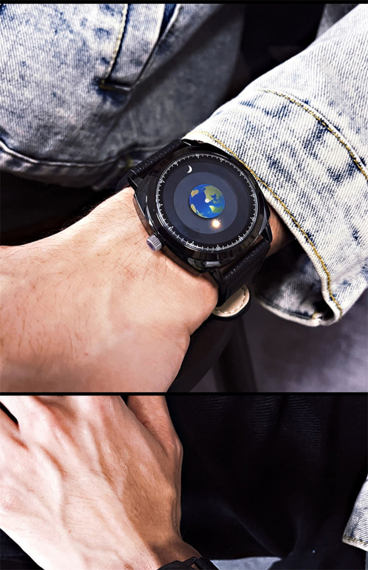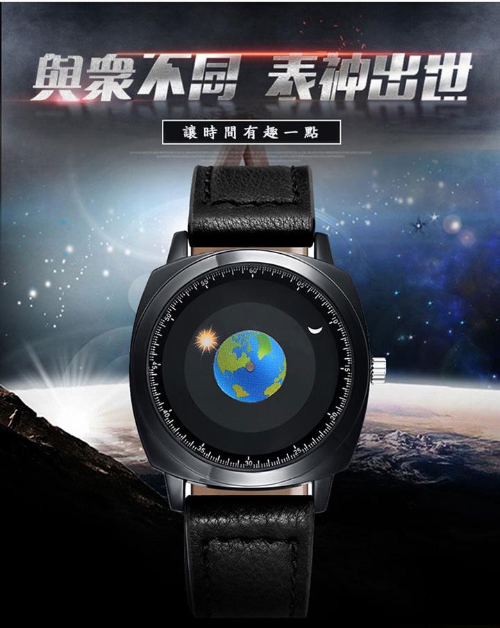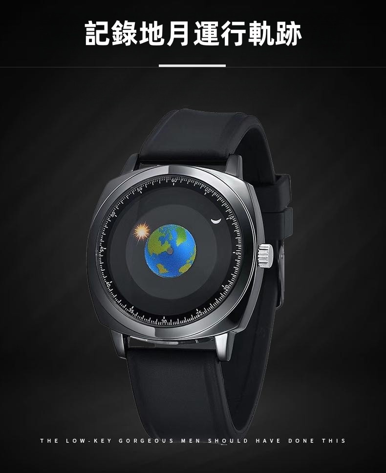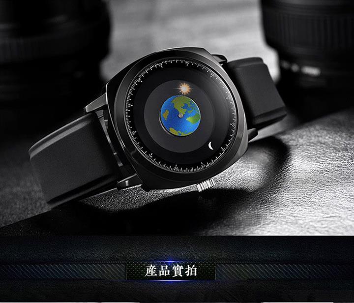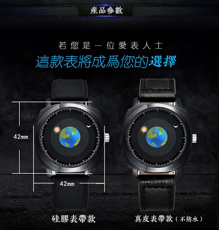 追蹤地月運行軌跡 | 專業防水 | 矽膠/真皮錶帶 | 高強礦物玻璃鏡面 | ADIS個性無指針地月運行男士石英手錶