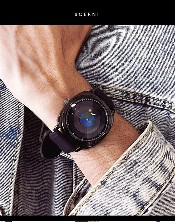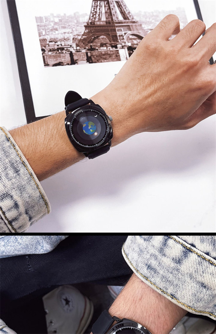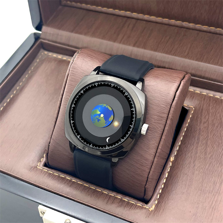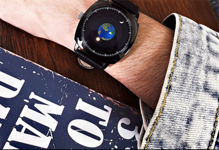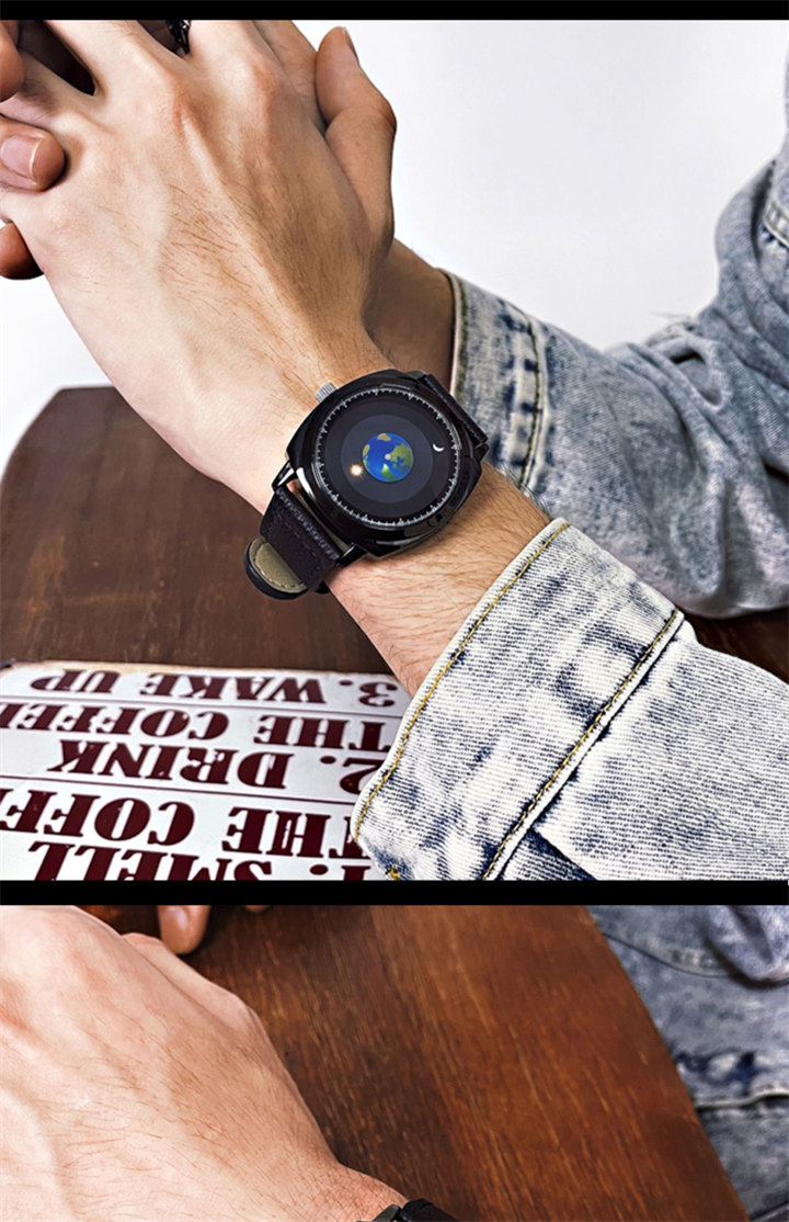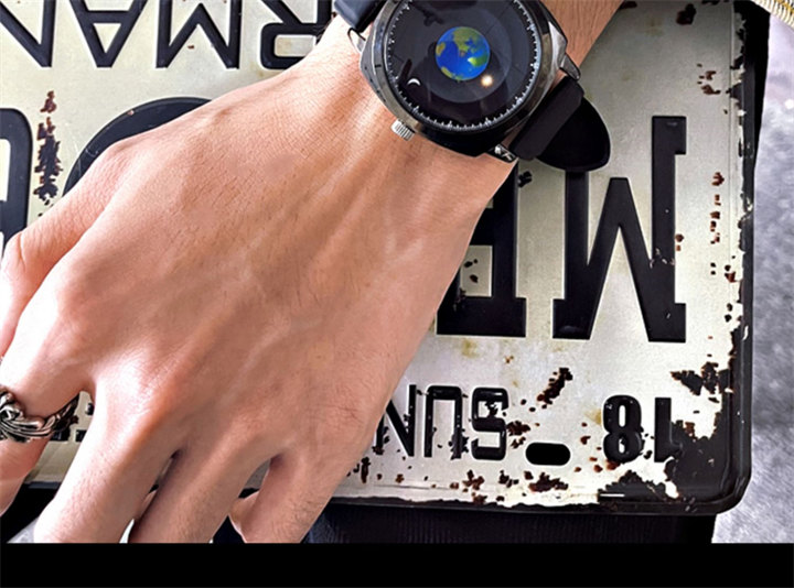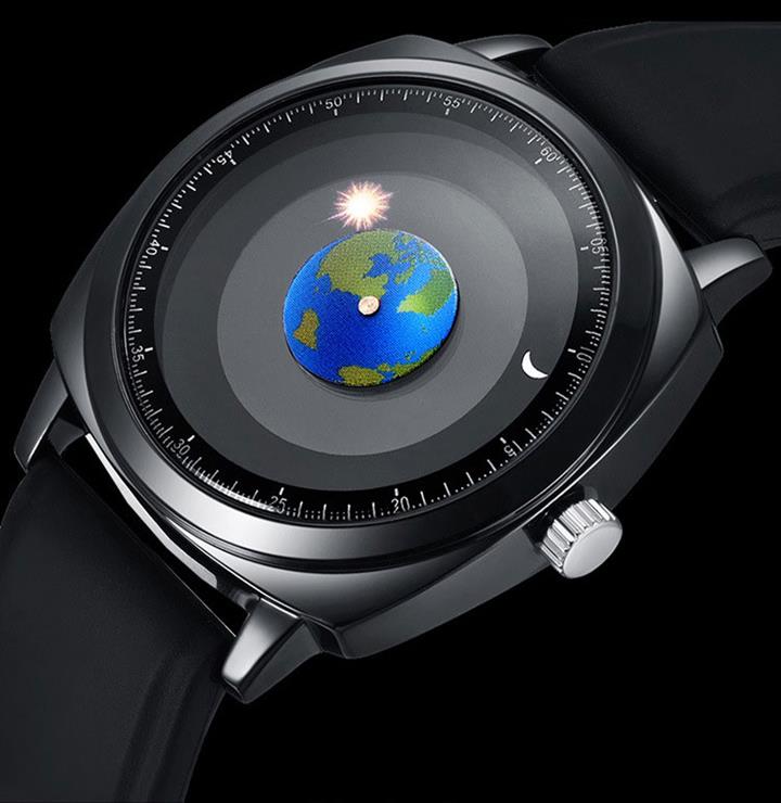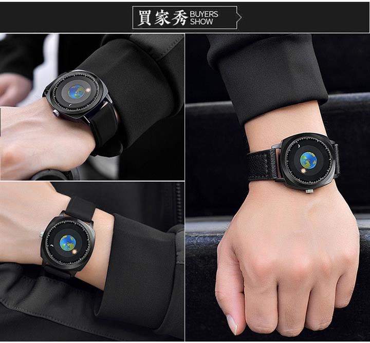 追蹤地月運行軌跡 | 專業防水 | 矽膠/真皮錶帶 | 高強礦物玻璃鏡面 | ADIS個性無指針地月運行男士石英手錶