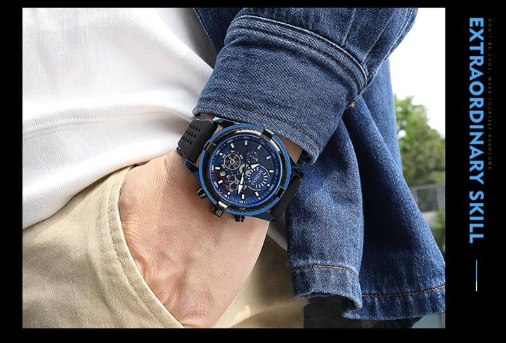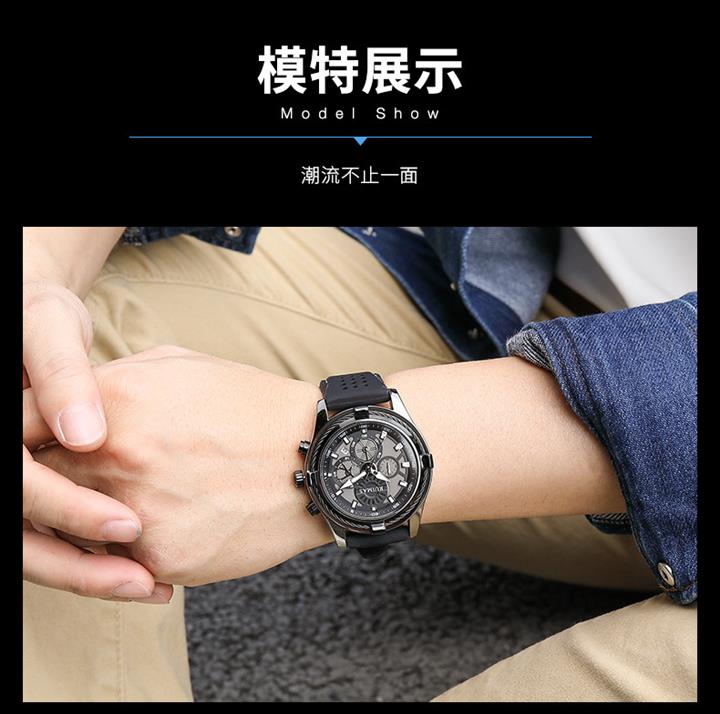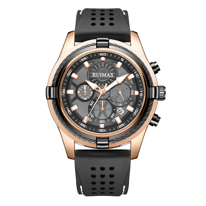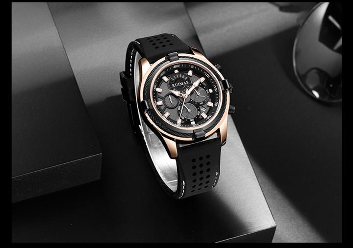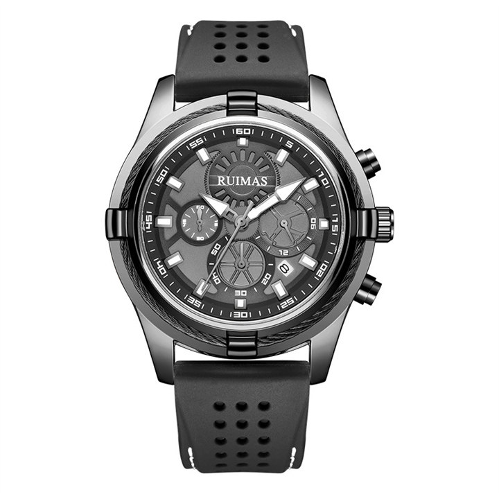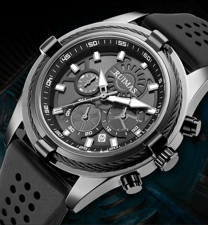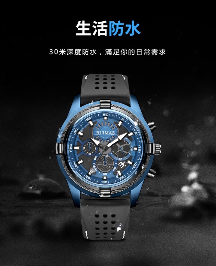 真三眼多功能錶盤 | 高強礦物玻璃鏡面 | 30米專業防水 | 防汗透氣矽膠錶帶 | 夜光刻度指針 | 日曆視窗 | RUIMAS腕上潮品多功能男士手錶