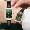 女錶・綠野流光 | 幸運孔雀綠條紋錶盤 | 玫金小方錶殼 | 質感真皮錶帶 | CAROTIF英倫經典孔雀綠幸運小方錶氣質文藝女生手錶