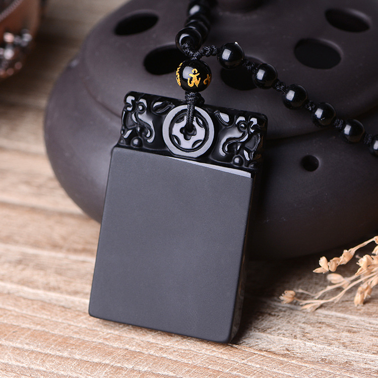 【平安無事牌】【精雕手製】平安無飾辟邪護身天然烏金黑曜石精雕平安無事牌吊墜項鏈 (天然黑曜石 平安無事牌)