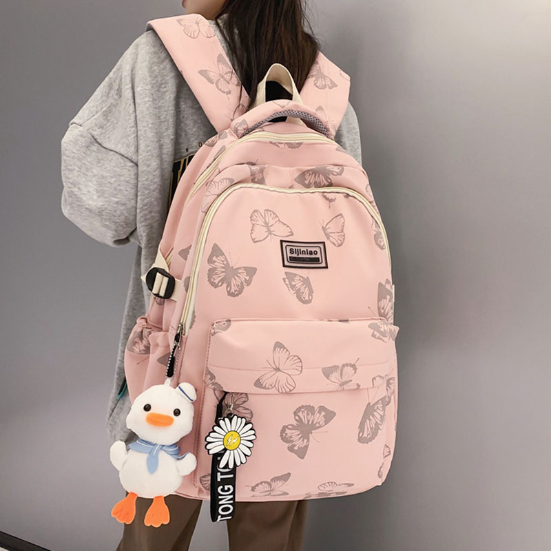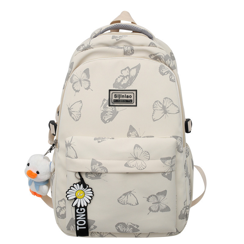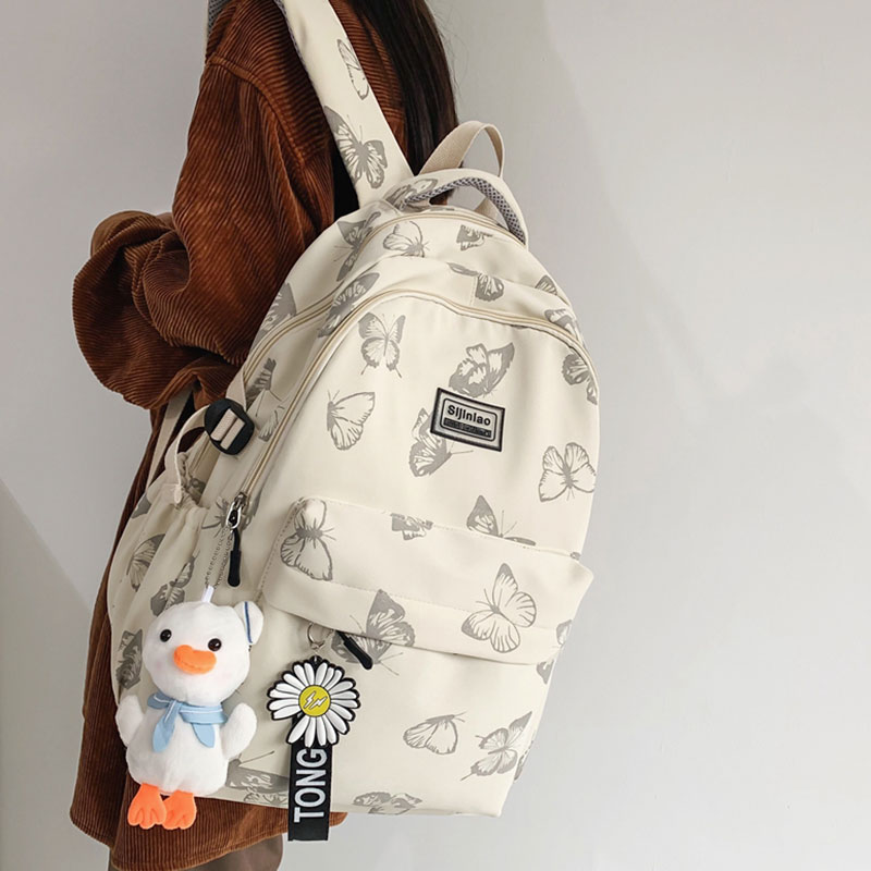- 【有側兜】尼龍防潑水面料,校園印花蝴蝶圖案休閑時尚女學生百搭款式,森系港風大容量學院風風格~
