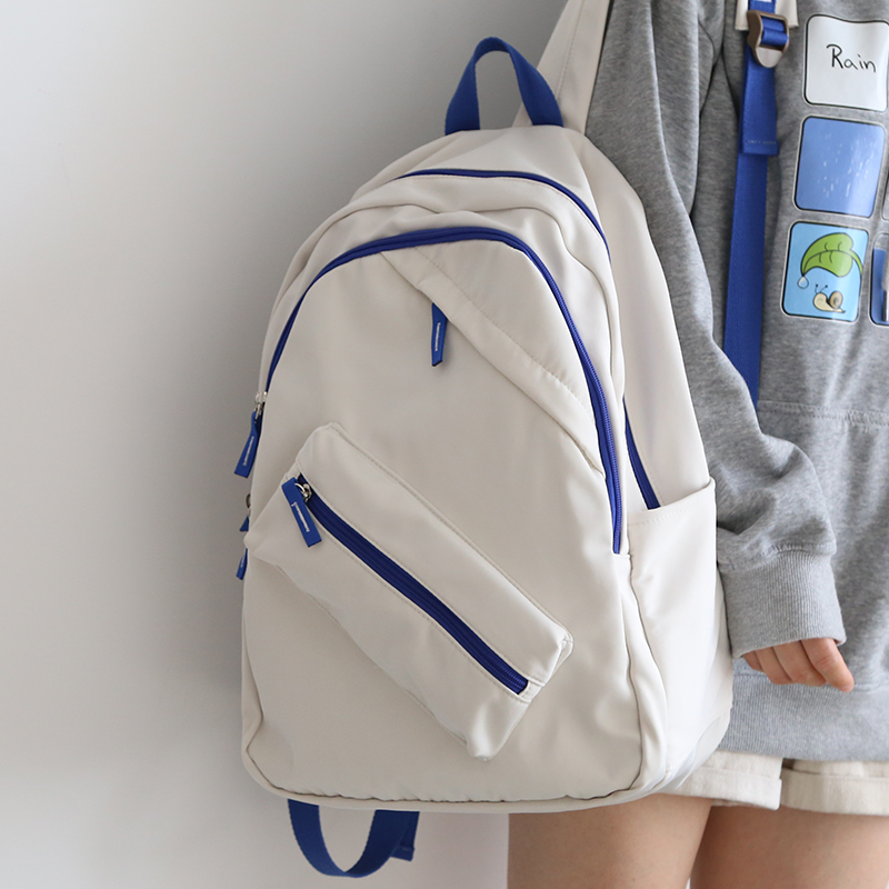 森系百搭新款書包男女大學生設計感小衆雙肩包純色後背包