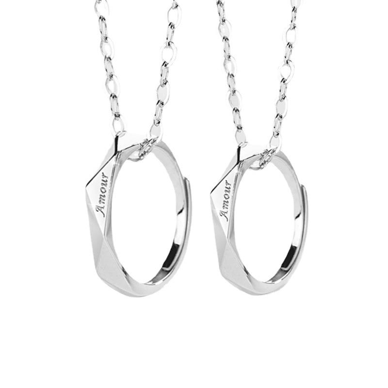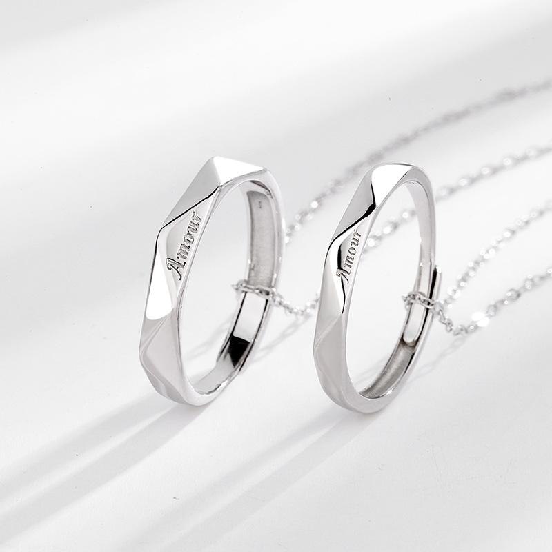 【法語Amour我愛你】【情侶戒指項鍊】S925純銀法語Amour質感戒指吊墜男女情侶項鍊