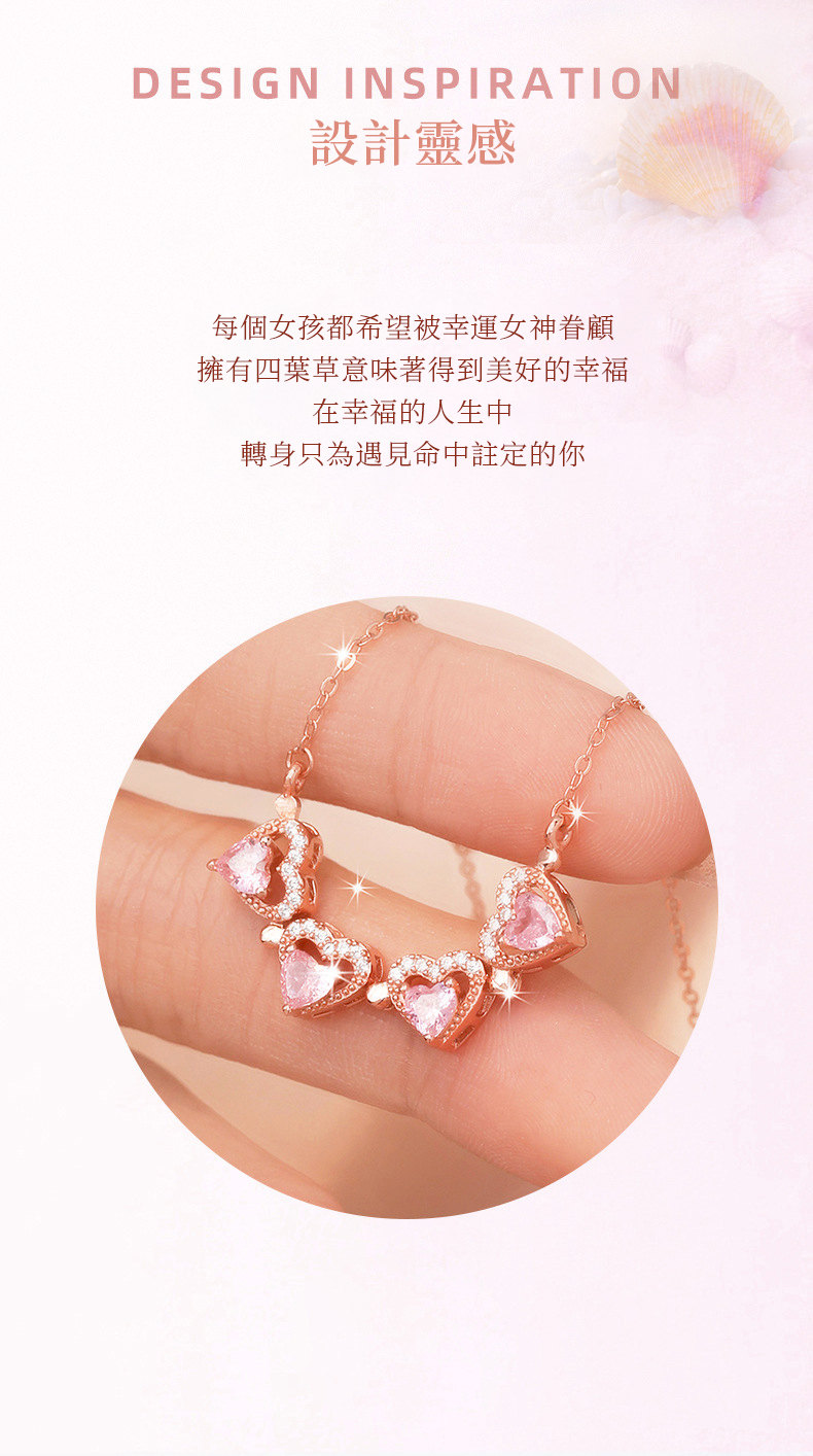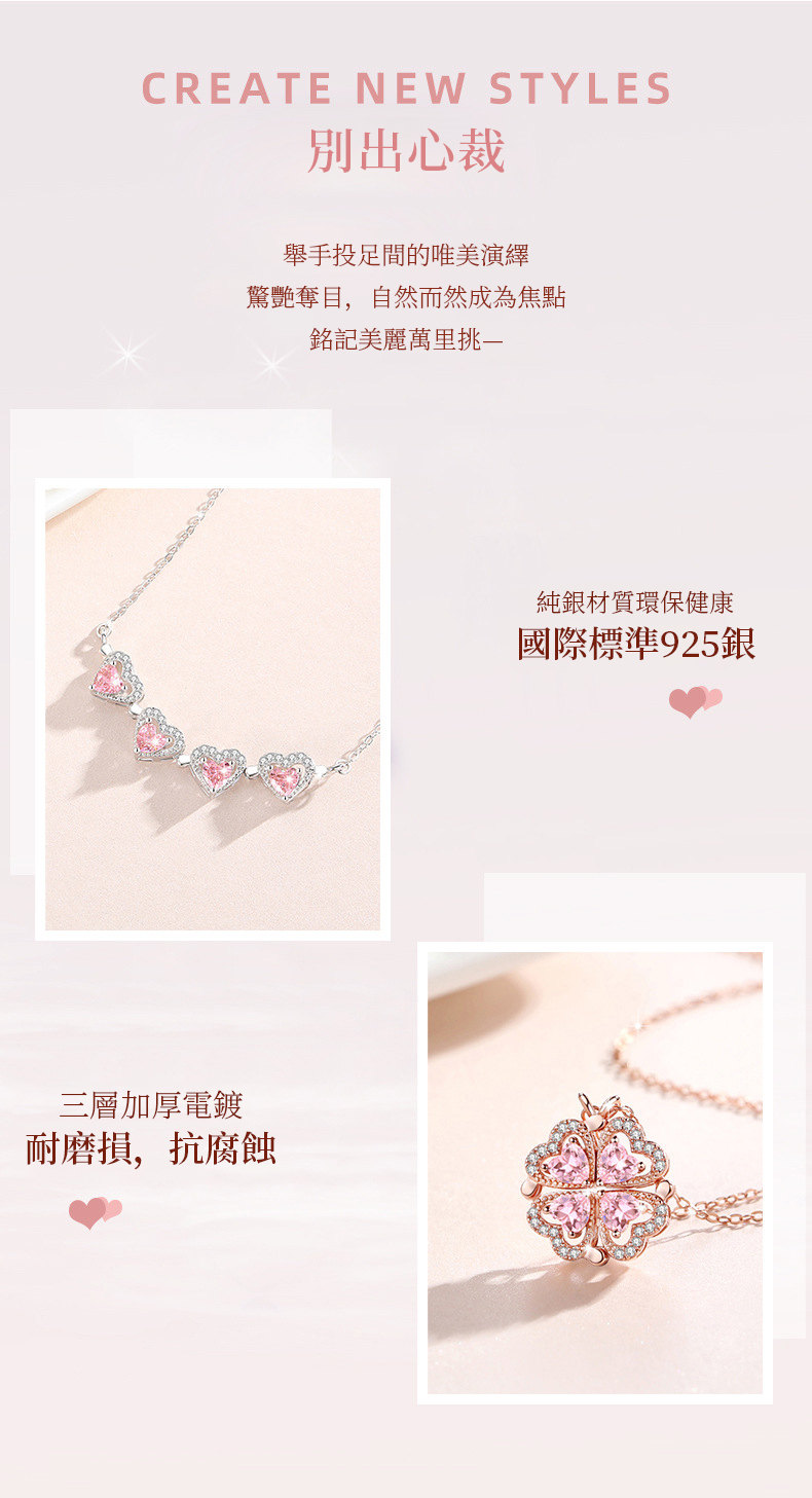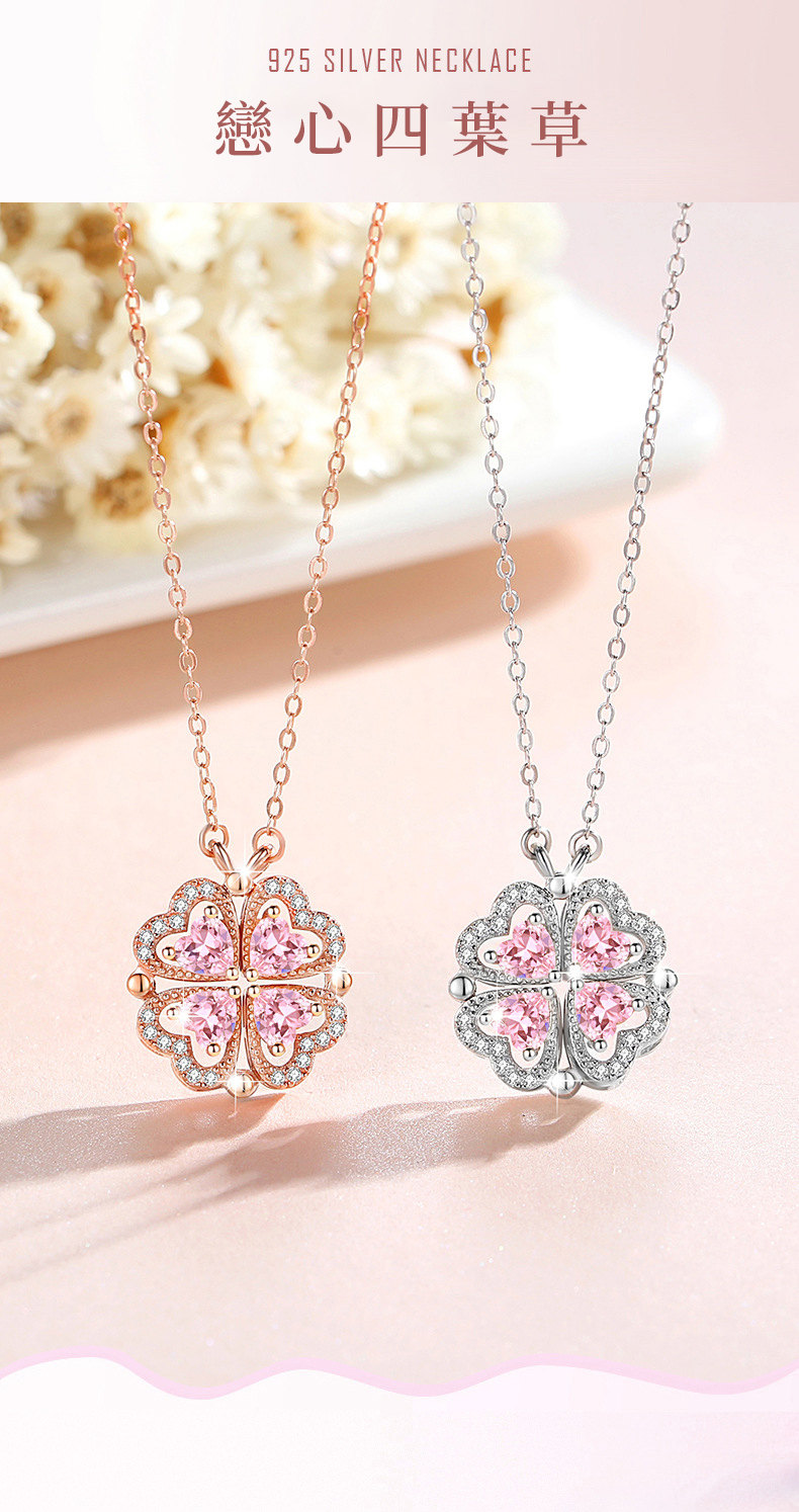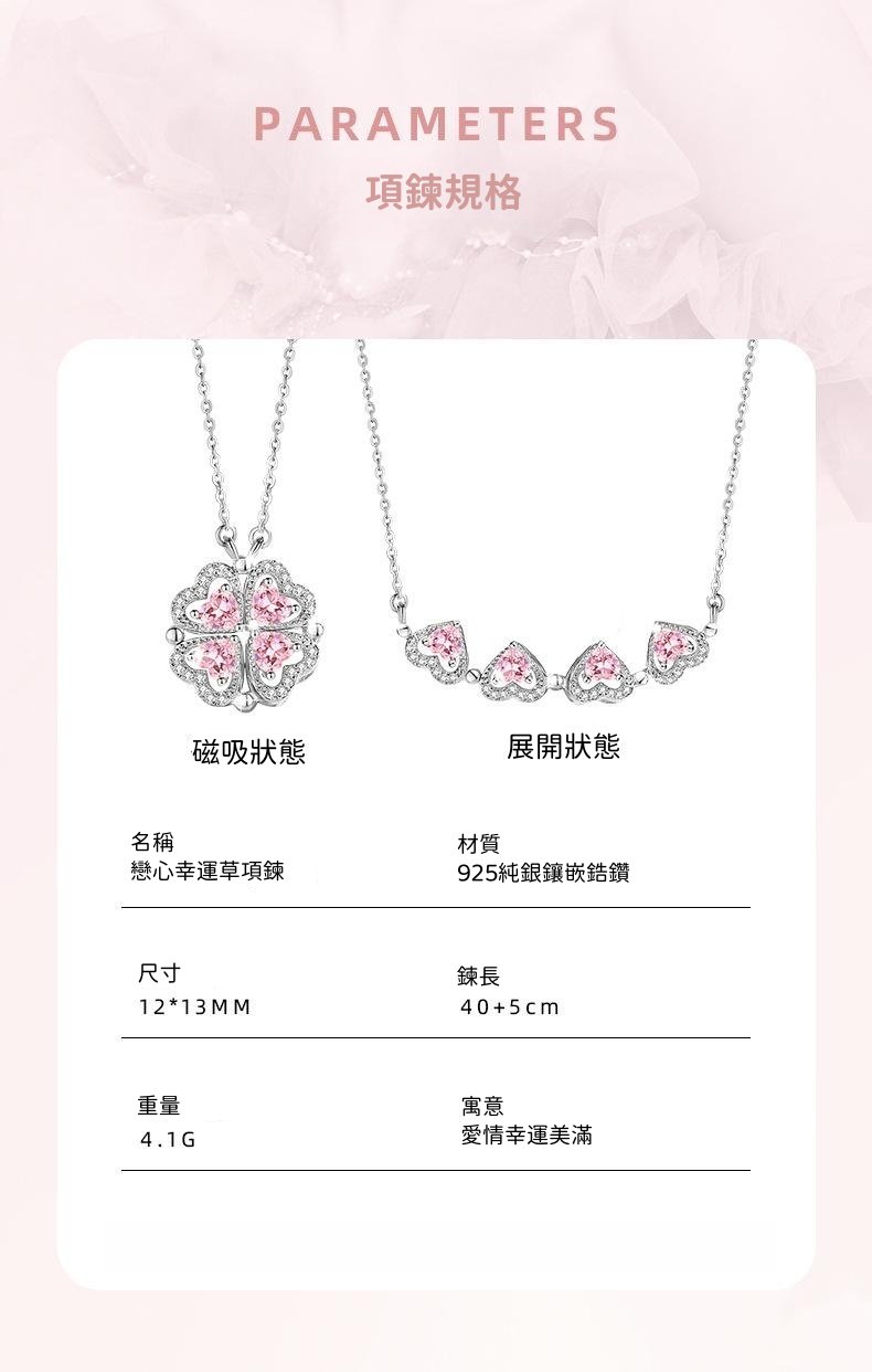 戀心幸運草 | 磁吸設計可展開 | S925純銀鑲鑽 | 女式 | 原創自製設計師款鎖骨鍊項鍊