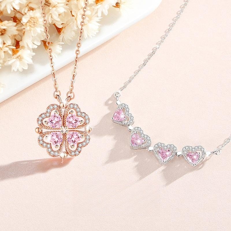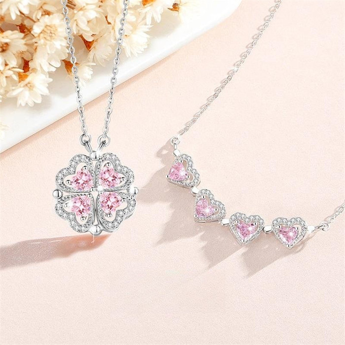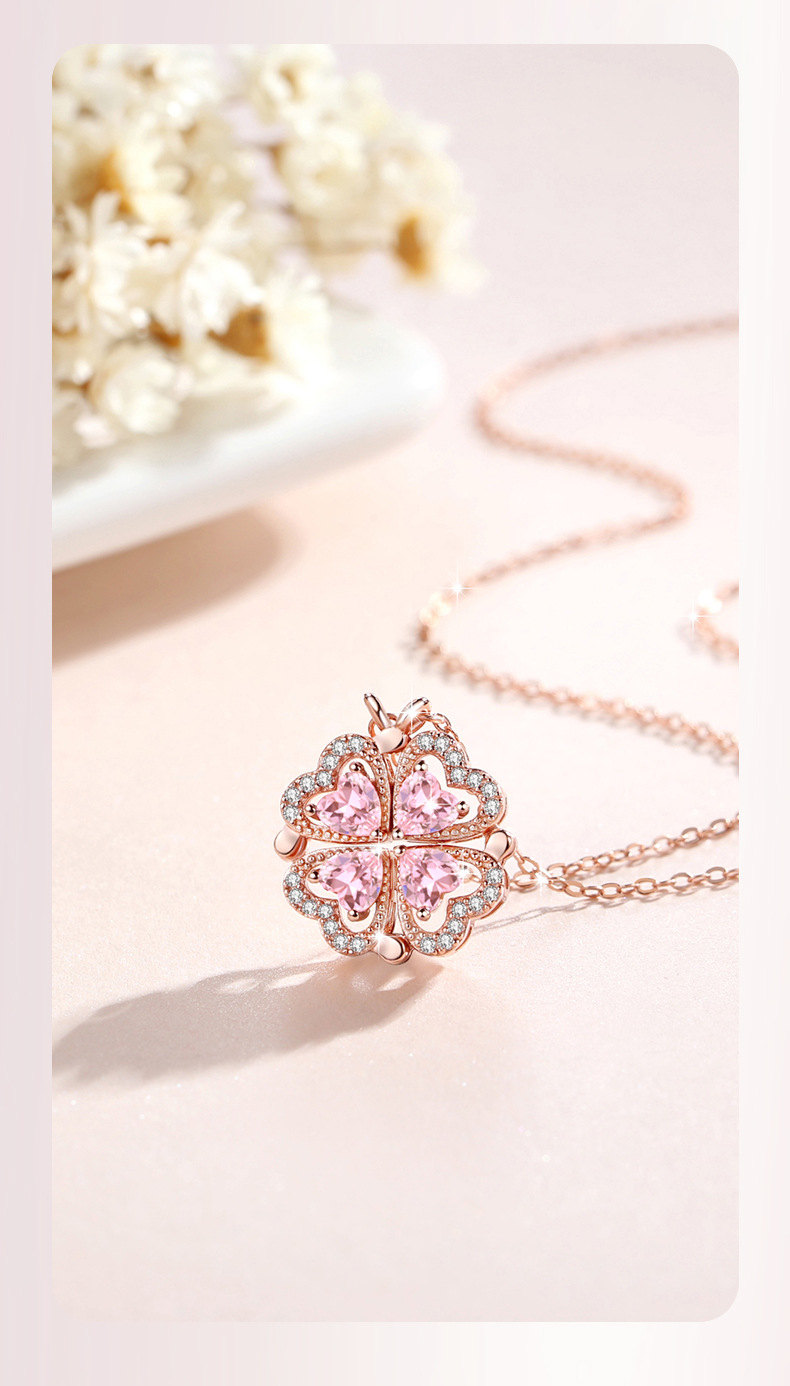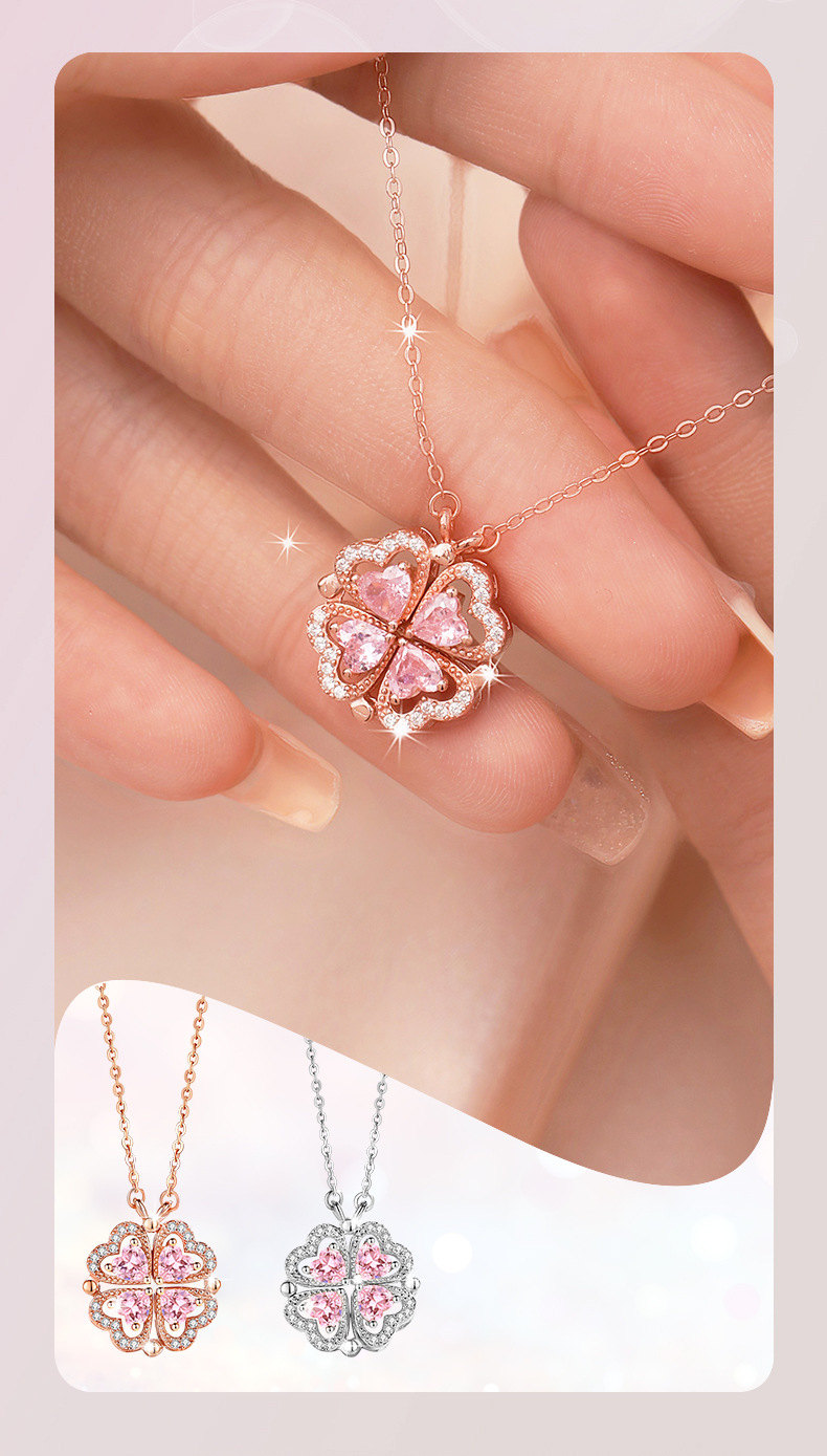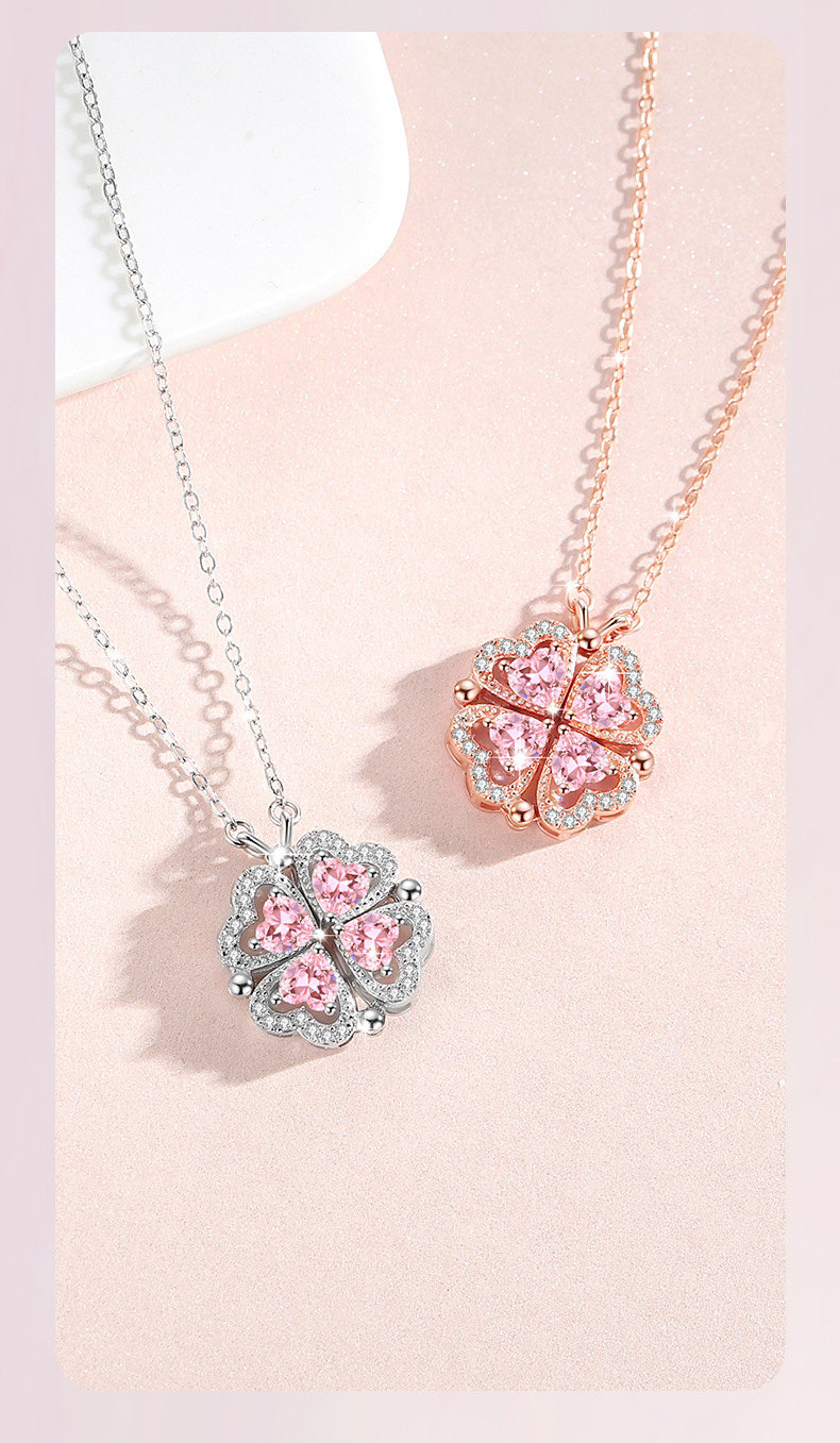 戀心幸運草 | 磁吸設計可展開 | S925純銀鑲鑽 | 女式 | 原創自製設計師款鎖骨鍊項鍊
