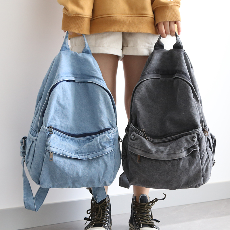 複古做舊帆布時尚雙肩包女日韓百搭書包女大學生男背包女雙肩後背包